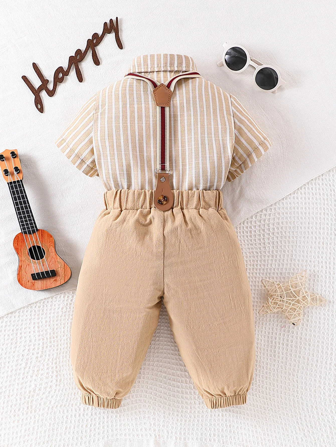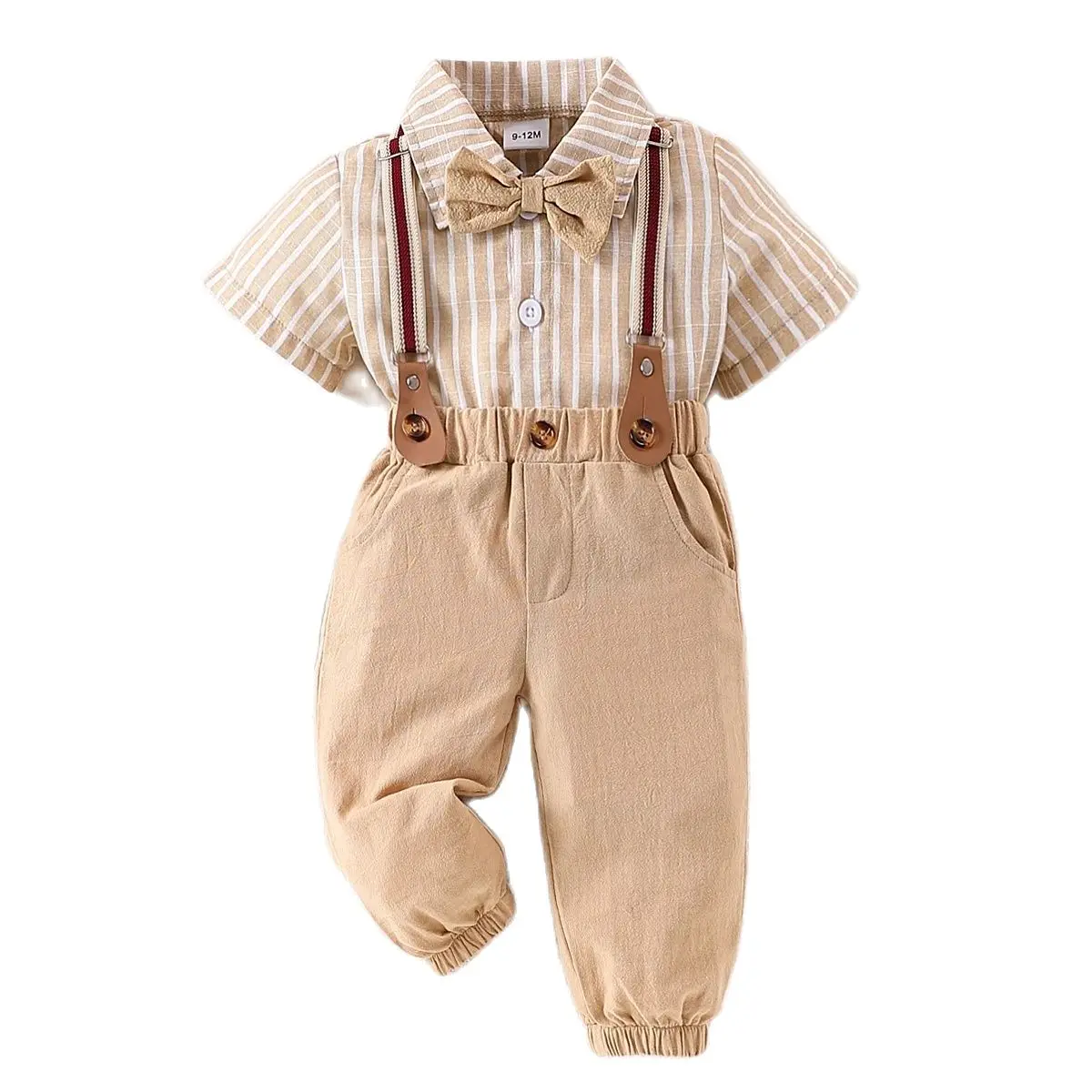 💥Description:1. Suitable for 3-24 months old little boys, please check size chart before you place order.2. ( Soft & comfortable) Made of 95% cotton fabric with good elasticity and durable, this set can be regarded as homewear for your little boy.💥Material composition : 95%COTTON, 5%SPANDEX💥Available size : 3-6 Months & 6-9 Months & 9-12 Months & 12-18 Months & 18-24 Months*Due to manual measurement please allow 1-2cm error for the above dimensions.*Due to the difference between different monitors, the pictures may not reflect the actual color of the item.*Designed, produced, pictured by ourselves. Version and quality guaranteed.💥Package include:1X Short sleeved shirt,1 X Strap pants