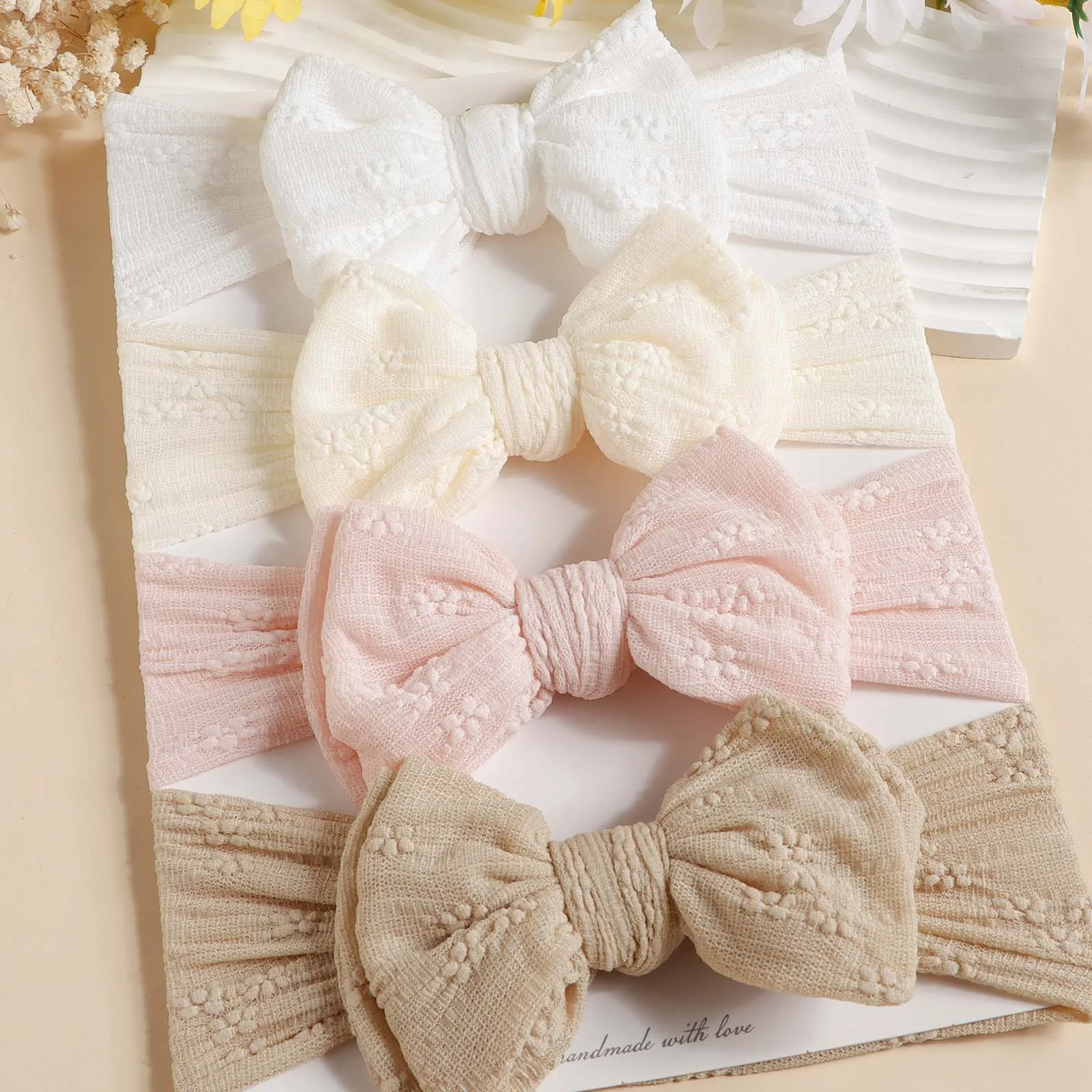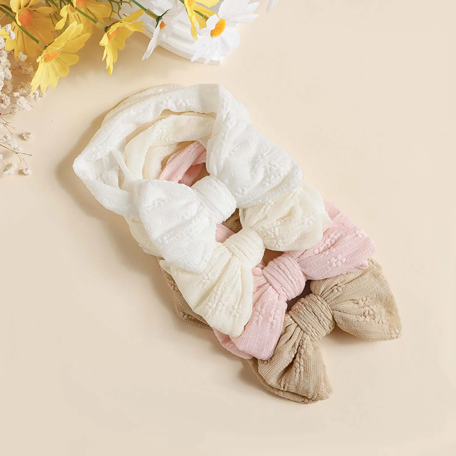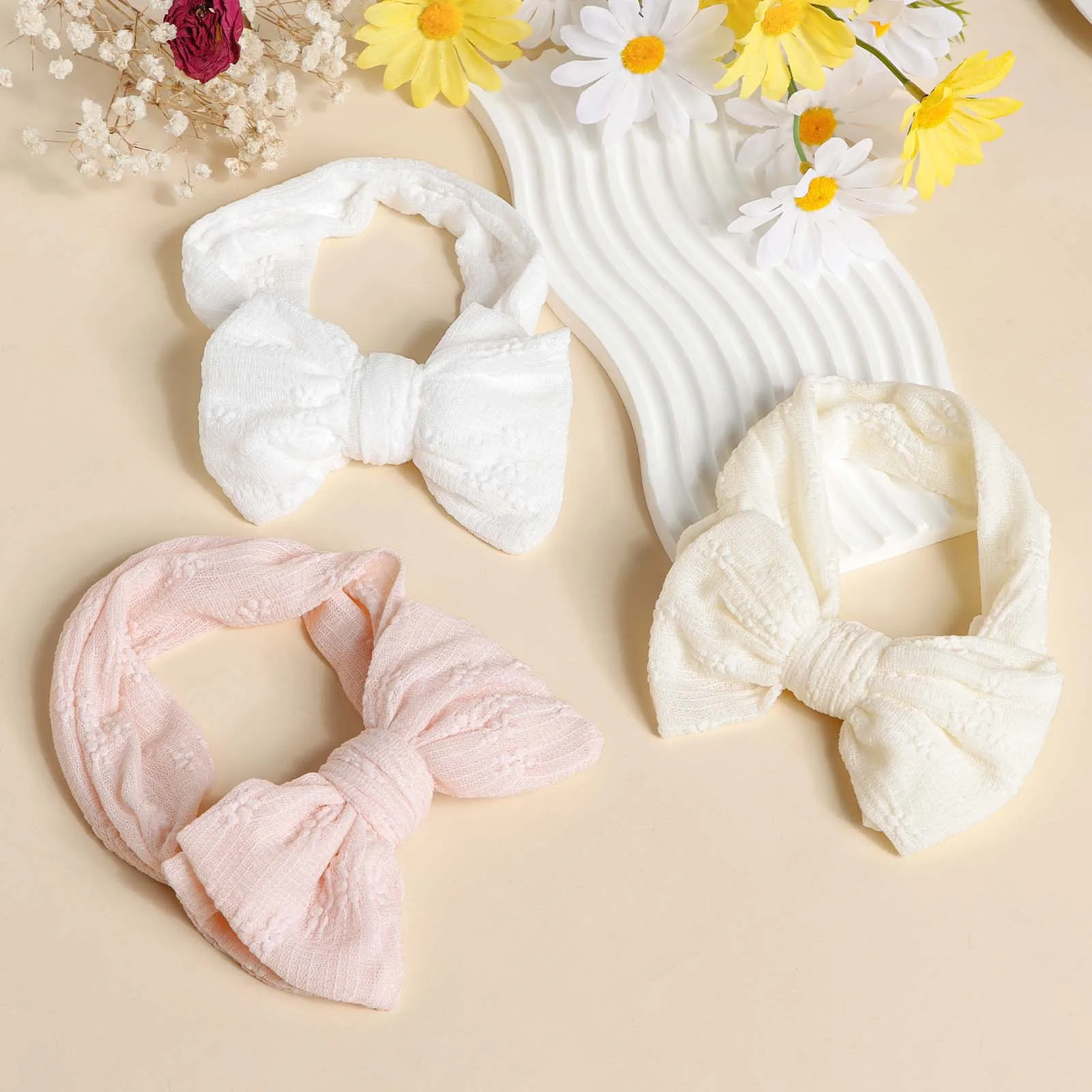 PRODUCT DETAIL1.Name: Baby Mesh bows headbands2.Material: Polyester3.Size: 16.5 x 8.5 cm/6.5 x 3.3 inch4.Note:There might be slightly difference in color ,because of the computer monitor settings,also with the difference in the measurement method ,please allow 1-3 cm in size deviation. We guarantee the style is the same as shown in the pictures .Thank you!5.Package Content: 50 g