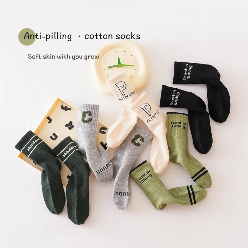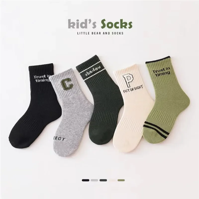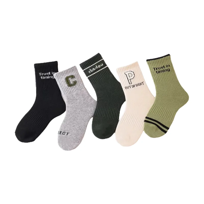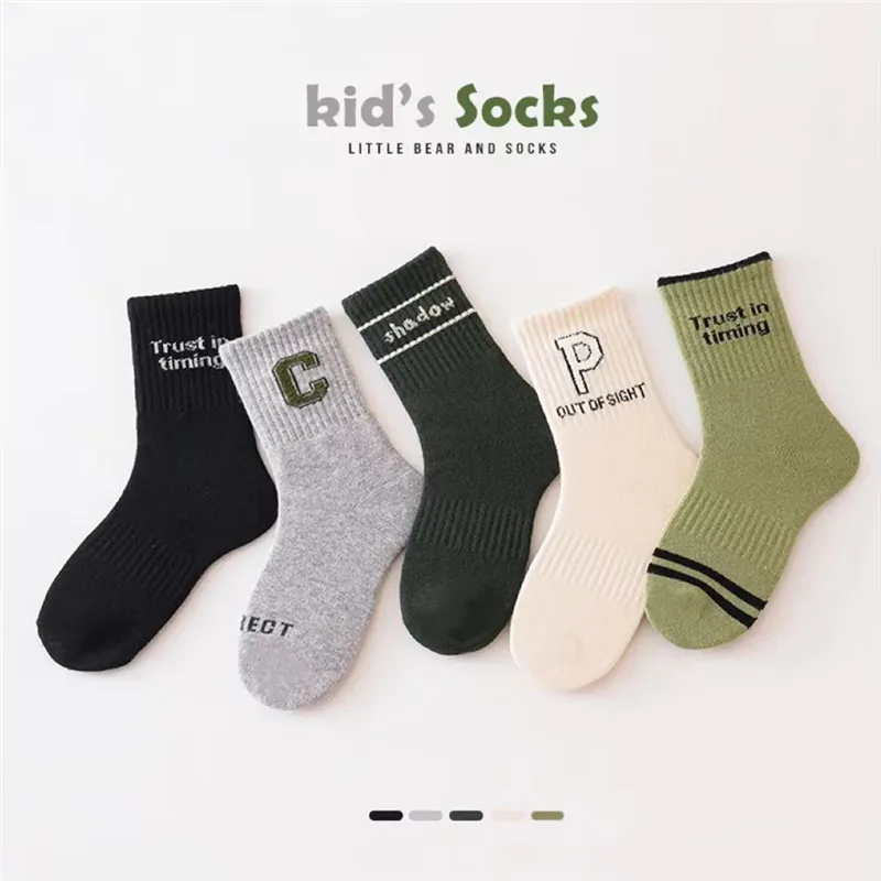 Let your little one's feet wear personality and fashion! Alphabet high-quality children's socks-soft, breathable and full of vitality! Socks are made of polyester fiber, which has excellent durability, good wear resistance, can withstand frequent wearing and washing, extend service life, and reduce the frequency of replacement and repair. The letter C&D design is fashionable and versatile, matcha green and army green, gray and black, a variety of colors to choose from, can be easily matched with any dress. Breathable, moisture-wicking, keep your feet dry and comfortable all day long. Elastic cuffs, close to the ankle, stay in place when actively playing. Long-lasting and durable, even the most energetic adventures can be endured.