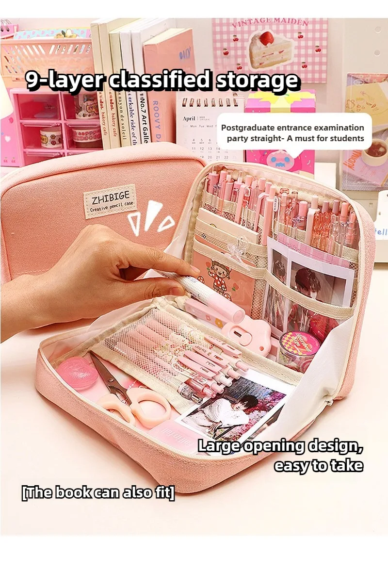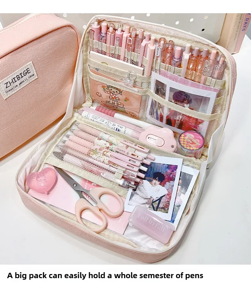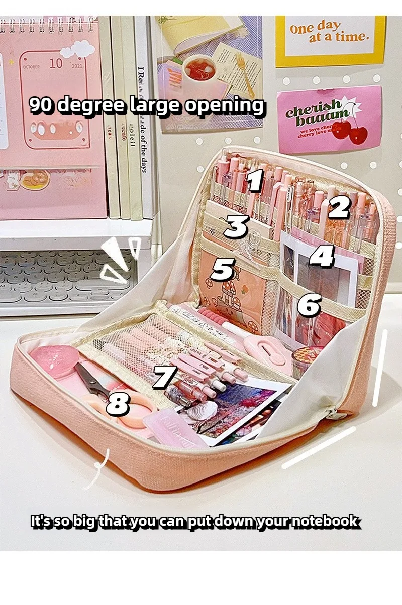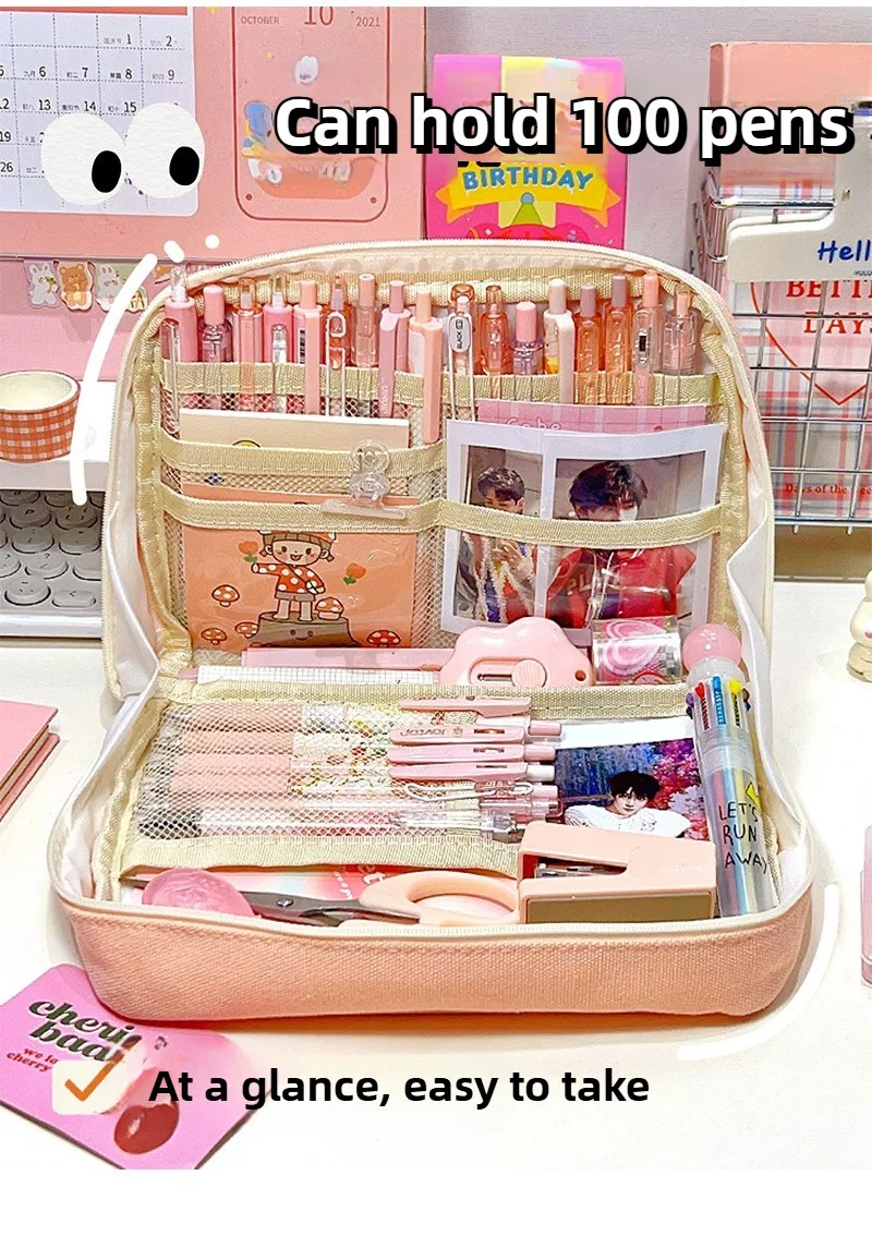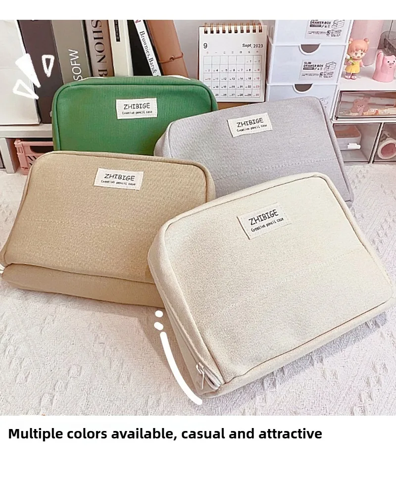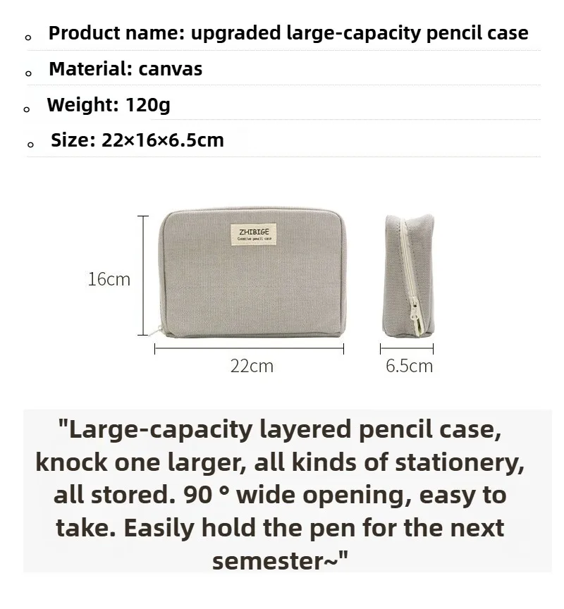 Description:★ [Innovative 90 ° Large Opening Design] Unique 90 ° fully unfolded design, making it easy to pick up and place stationery at a glance, bidding farewell to the traditional pen bag searching problem★ [Multi layer classification storage] Built in independent layers, easy to classify and store various stationery such as pens, erasers, rulers, etc★ 【 High quality waterproof material 】 Made of high-density waterproof fabric, wear-resistant and durable, protecting stationery from moisture★ [Large Capacity Practical Design] It can accommodate multiple pens and other stationery, making it an ideal choice for students to take exams, draw, and workProduct specifications:Material: CanvasSize: 22 * 16 * 6.5cmColor: Pink/Grey/Dark Green/Off White/KhakiWeight: Approximately 120gReminder:1.Due to factors such as shooting lighting and display, there may be color deviation in the actual product. The specific color will depend on the received product!!!2. This linked product only includes one pencil case, and the stickers, toys, and stationery mentioned in the commercial details are all shooting props!!!Notice:*Due to manual measurement, please allow a difference of 1-3cm.*Due to the differences between different monitors, the images may not reflect the actual color of the item.*Images on this page are for illustration only and the design of the actual product may differ.*Channel availability may vary between markets. Local standards and laws may vary, please ensure this product meets local.