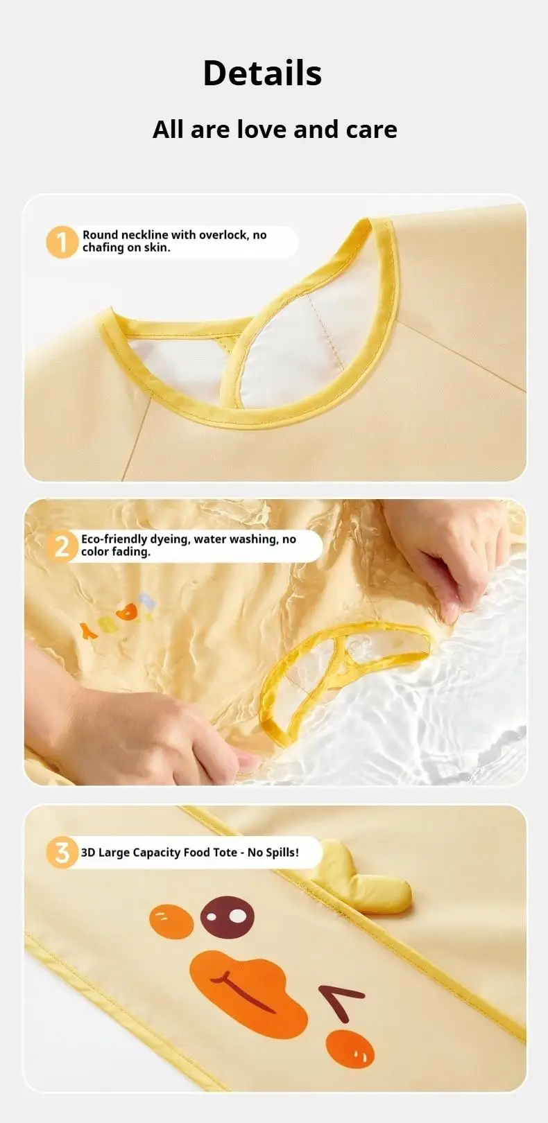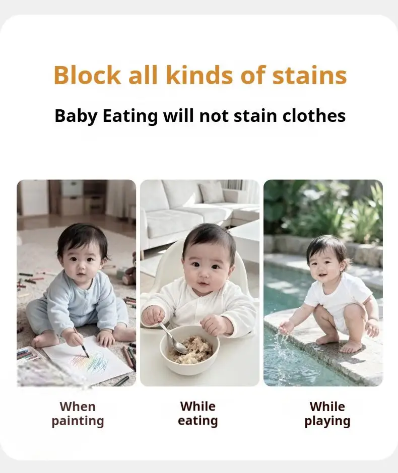 Easy to CleanThese bibs are easy to clean, making them convenient for busy parents who want to maintain a tidy environment for their little ones.Unisex DesignWith its neutral color and design, these bibs are perfect for both boys and girls, making them a versatile addition to any baby's wardrobe.Waterproof MaterialCrafted from high-quality polyester, these bibs offer superior waterproofing to keep your baby's clothes dry during mealtimes.Japan & Korean StyleInspired by the latest trends from Japan and Korea, these bibs bring a touch of international style to your baby's feedings.Suitable for Ages 1-3YDesigned specifically for babies aged 1 to 3 years, these bibs provide a comfortable fit and are perfect for feeding time.