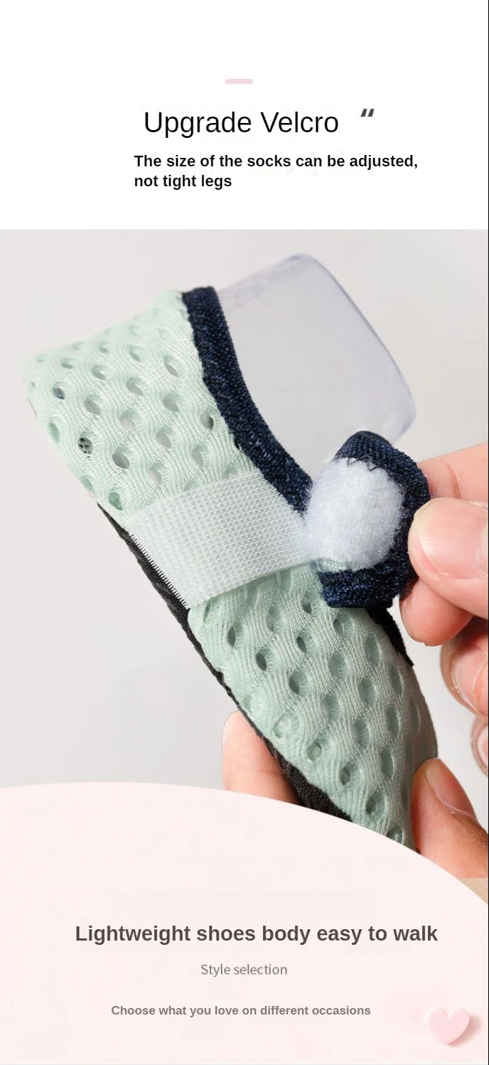 The designer said:A very Comfortable Toddler Shoes,The mesh of the socks is very easy to wear in summer5 colors available, both boys and girls wearSilicone non-slip shoe sole:Evenly distributed sole for better grip performance,Baby is not easy to slip and add a safety guarantee,Please note that the soft rubber sole is not non-slip when exposed to waterSoft bottom socks:It is easy for the baby to walk. Shoes body lightweight, good for foot,development, mom is more assuredBreathable Large Mesh:Breathable sweat-absorbent refreshing spring and summer visible comfort,Moisture absorption and heat dissipation not stuffy feetLightweight shoes body:Lightweight material, walking like wind,Light burden slow down, every step is comfortableUpgrade Velcro:The size of the socks can be adjusted, not tight legs,Lightweight shoes body easy to walkThickness index:Thin, Elasticity index:Micro-elasticSize refernce/Size chartAge (reference) Foot length (reference) Size (reference)6-12Months 11.5CM XS12-18Months 12.5CM S18-24Months 13.5CM M24-30Months 14.5CM L30-36Months 15.5CM XL