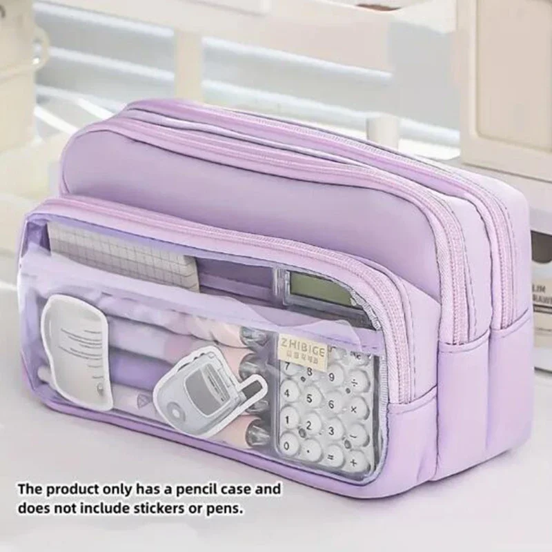 Chic Solid Color Pencil Case Korean Simplicity Transparent Pen Pouch Large Capacity Stationery Organizer Bag School Supplies Warm Tip :Please be reminded that due lighting effects, monitor's brightness/contrast settings etc, there could be some slight differences in the colour tone of the website's photo and the actual item. Item Measure by hand, it could be 1cm different,your kind understanding will be much appreciated.