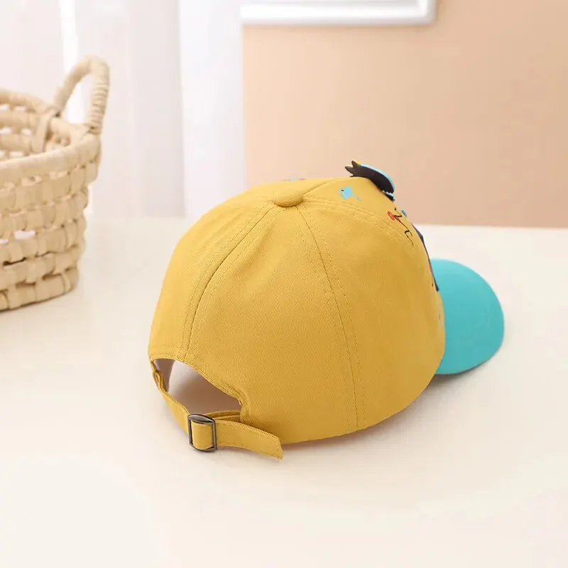 Material: CottonStyle: EmbroideryCap circumference: 52-54cmAge: 2-7 yearsColor: yellow, blue, khaki, black, orangePacking include:one piece baby hat