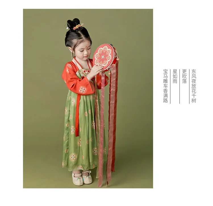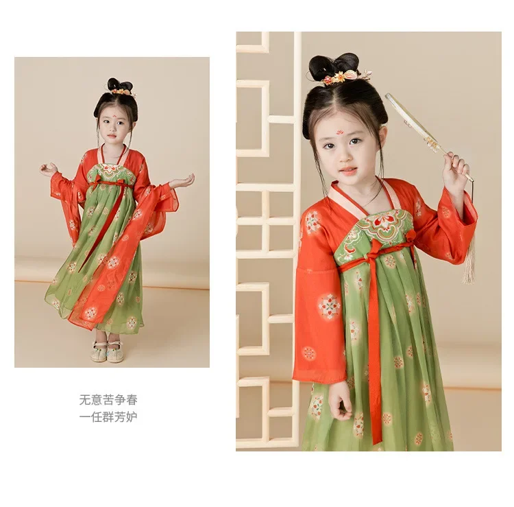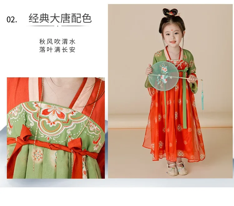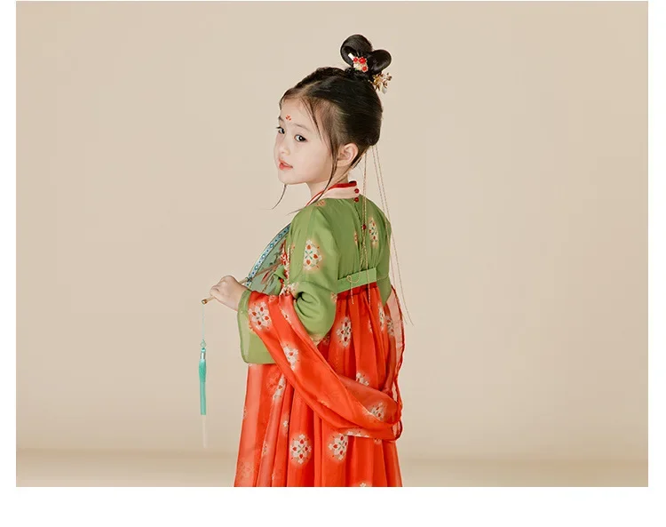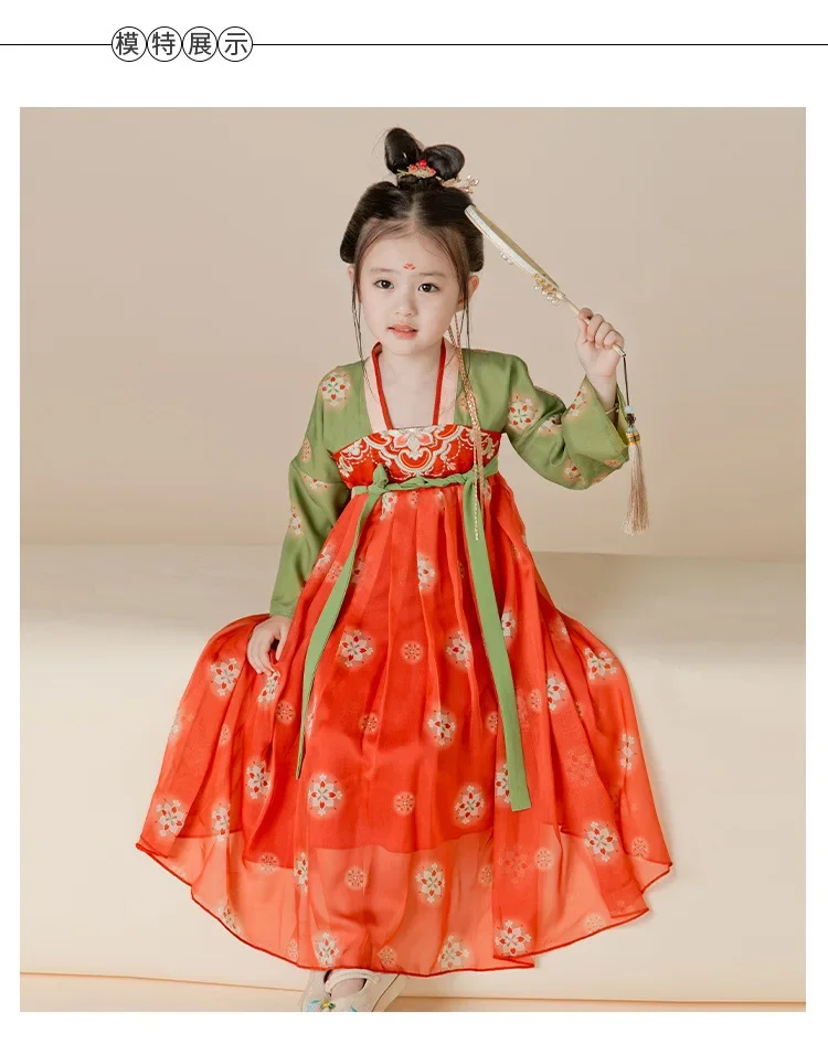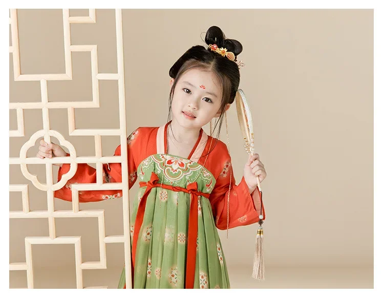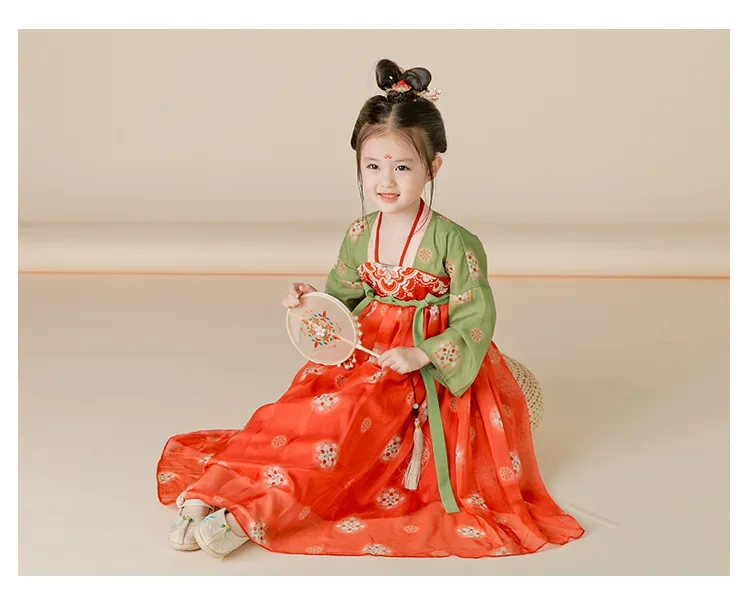 女.童汉服秋中国风复古儒裙超仙连衣裙喜庆女宝敦煌风演出服
