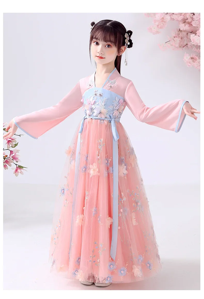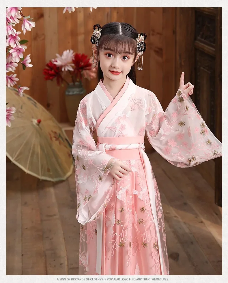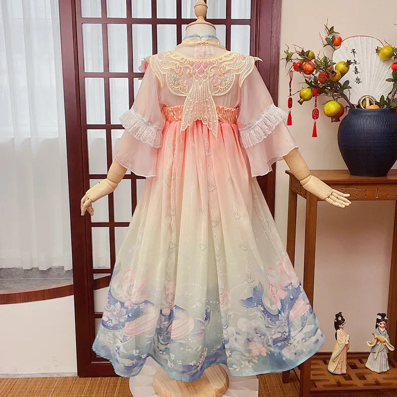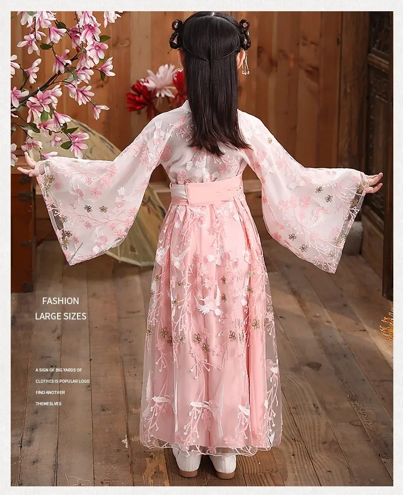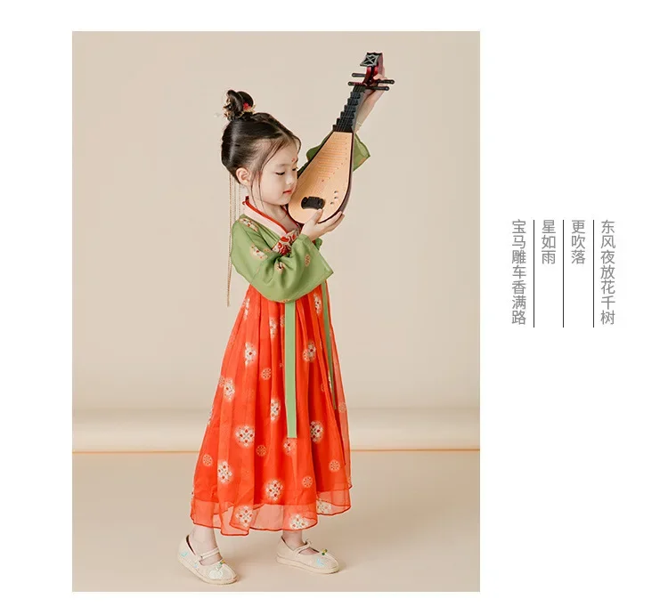 女.童汉服秋中国风复古儒裙超仙连衣裙喜庆女宝敦煌风演出服