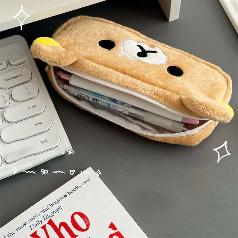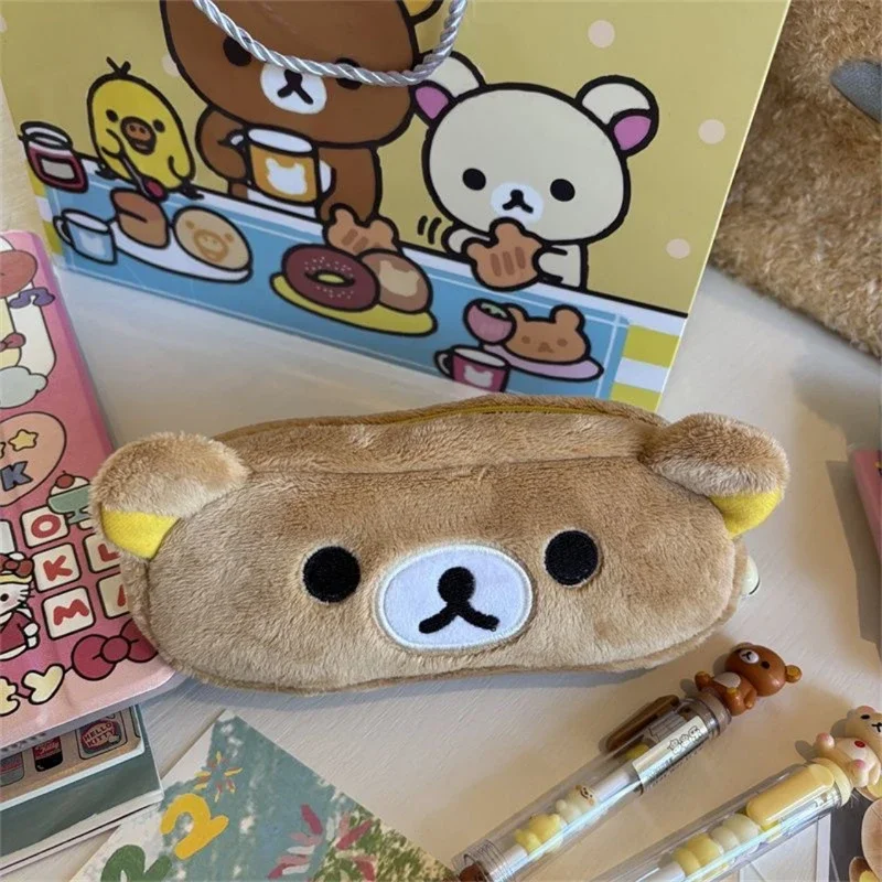 Kawaii Rilakkuma Pencil Cases For Kids Girls Cute Cartoon Bear Pencil Pouch Organizer Pen Bag School Stationeries Gifts Ins Hot