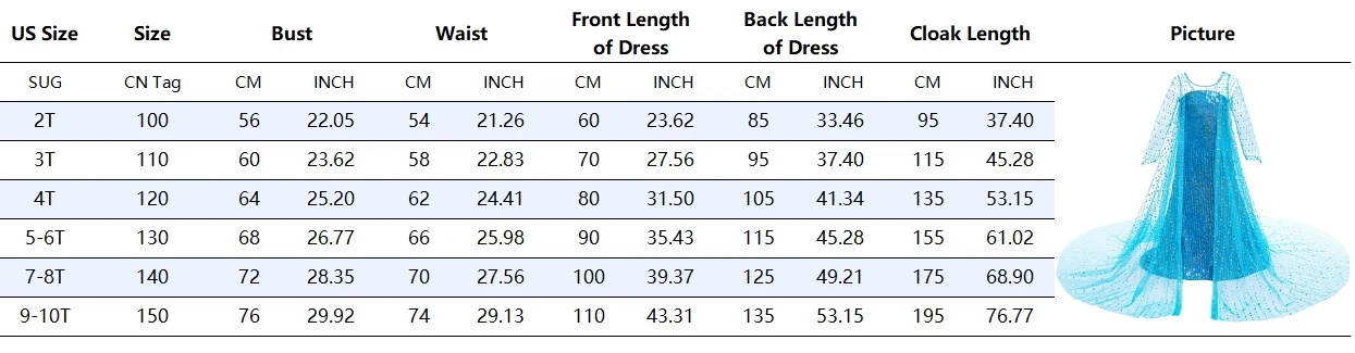 Dresses Description:Color: As shown in the pictureSuitable Age: 2T-10TSuitable Height: 100-150 cmItems Feature:1. High Quality Fabrics, Fine Cutting And Workmanship, Help Children Realize Their Princess Dreams.2. Rich accessories, give children a different, novel experience.3. Ideal Gift: Great for your little girls, granddaughter, friend's, niece to surprise them on the children's day or special holiday! Give your girl such a beautiful gift and she'll be very happy then.