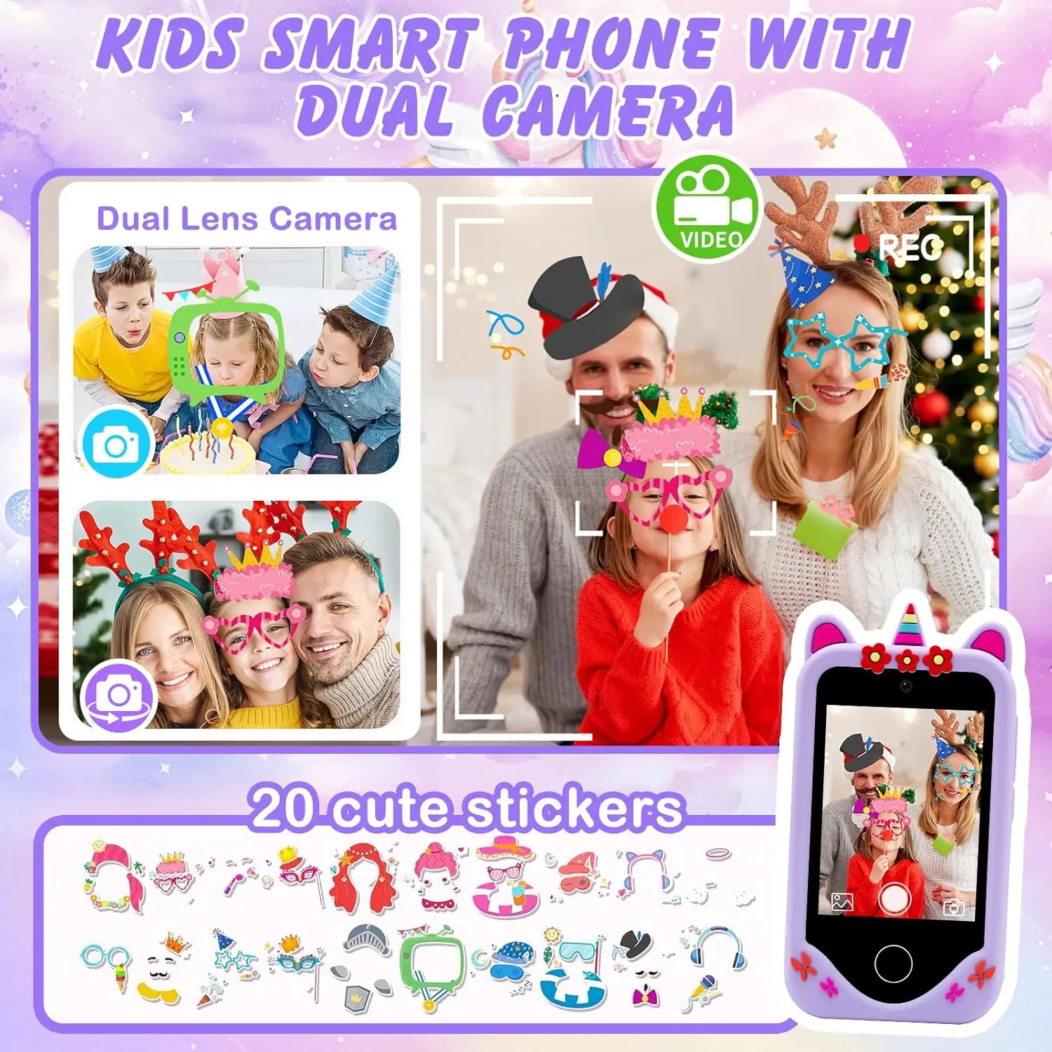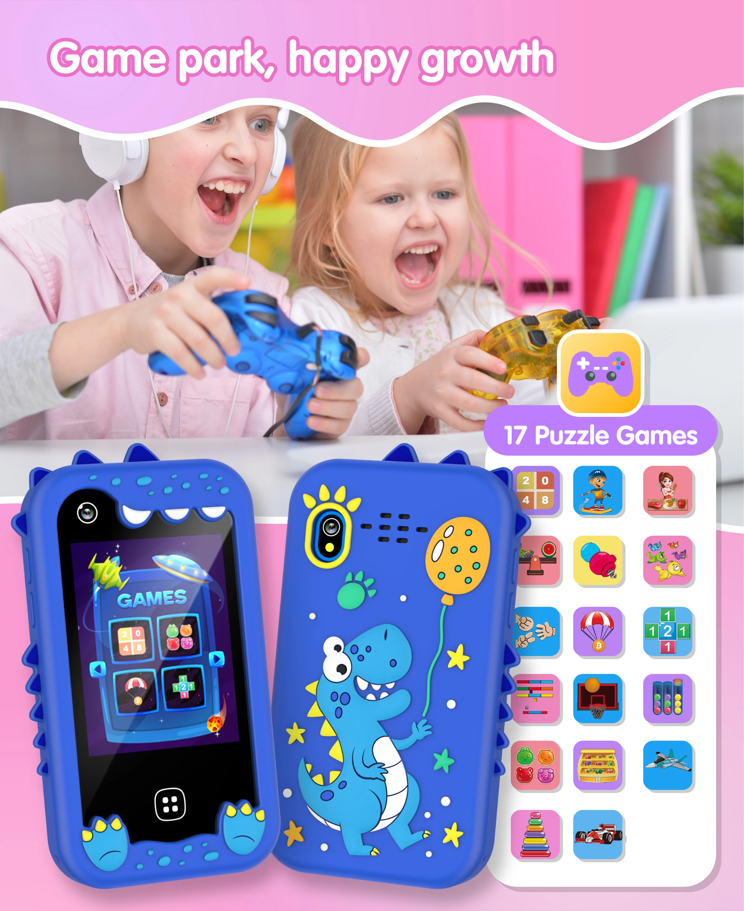 Kids Smart Phone Touch Screen Camera Toys Learning Toy For 3-12 Year Old Boys Girls Phone MP3 Player Christmas Birthday GiftsParameter:Chipset Supplier: MTKChipset: MTK 2503FLASH memory: 64Mb+128Mb+512MB (Larger Built-in Memory Option)Screen Type: IPSscreen size: 2.8''Resolution: 240*320Screen: Full screen touchBattery Capacity: 600mAh Charging Method: Type-C charging cableLanguage: English / French / Spanish / Italian / GermanMain Function:Dual Cameras, Photos, Video Player, recorderMusic Player, Games,PetTime Tool, Sport Watch, TimerHabit Trcker, I can, TorchTime Teacher, Sound Teachercalculator, Draw, CalendarSettingsPacking List:1* Smartphone1* Charging Cable1* User Manual1* Retailed Box1* Silica Case Note: this link have 7 versions toy phones for your choose, please choose it carefully, thank you!Detailed Photos: