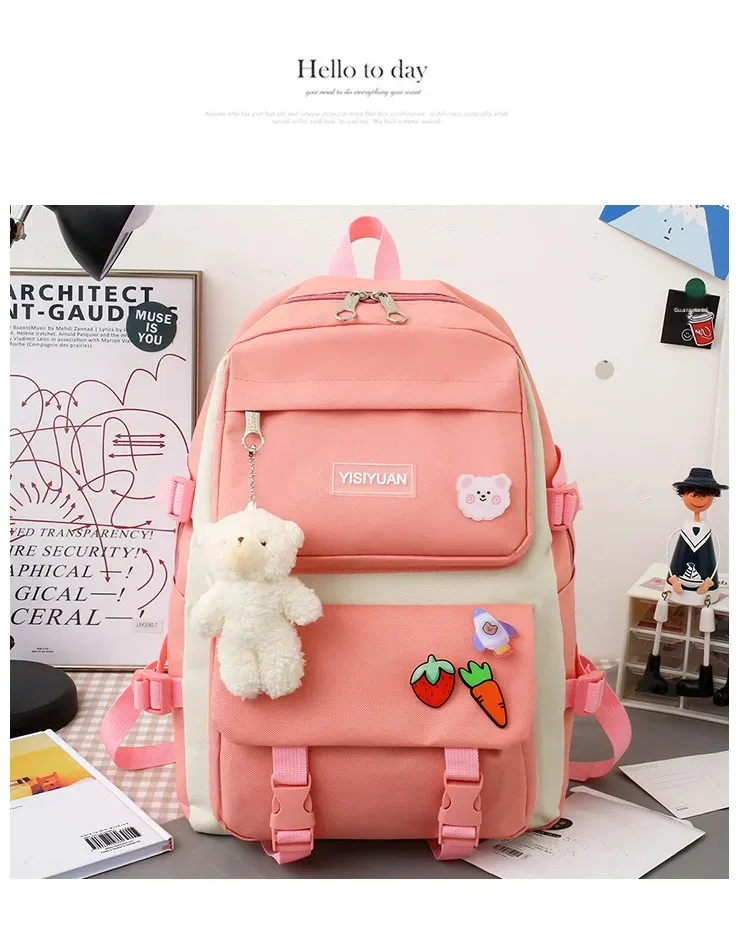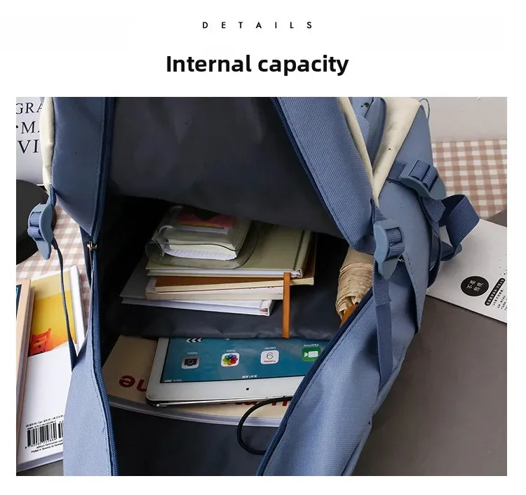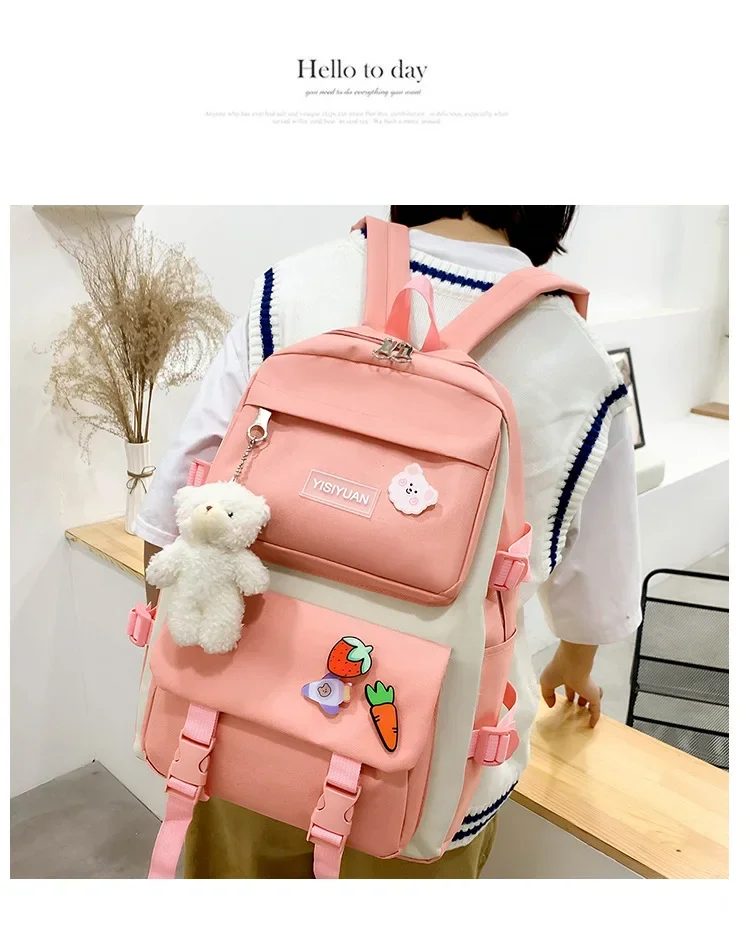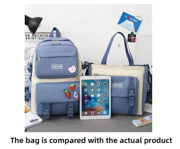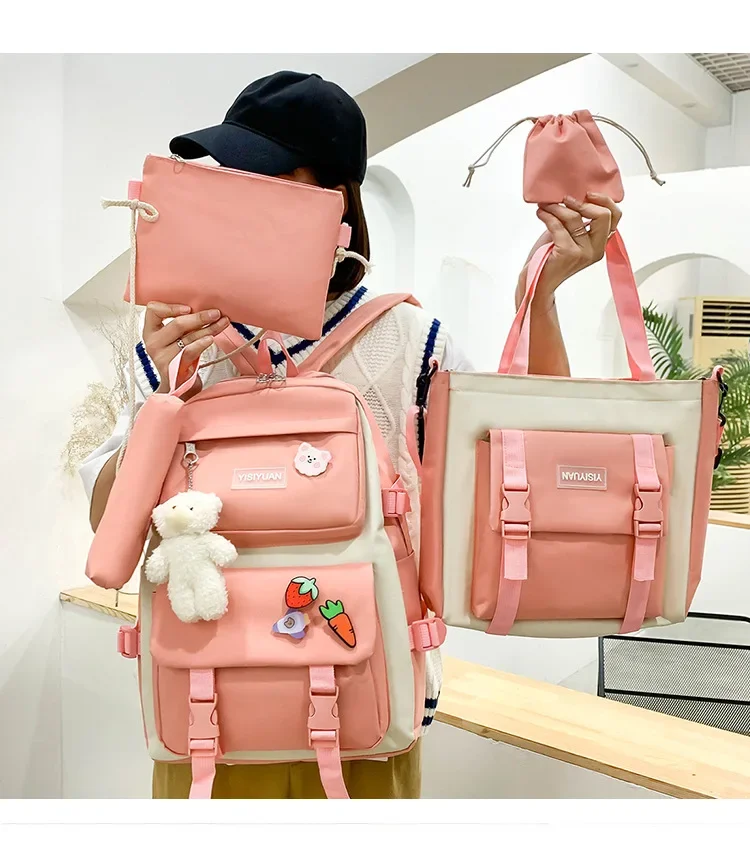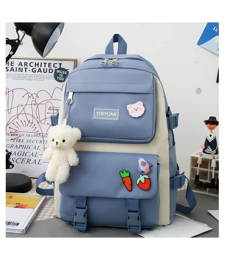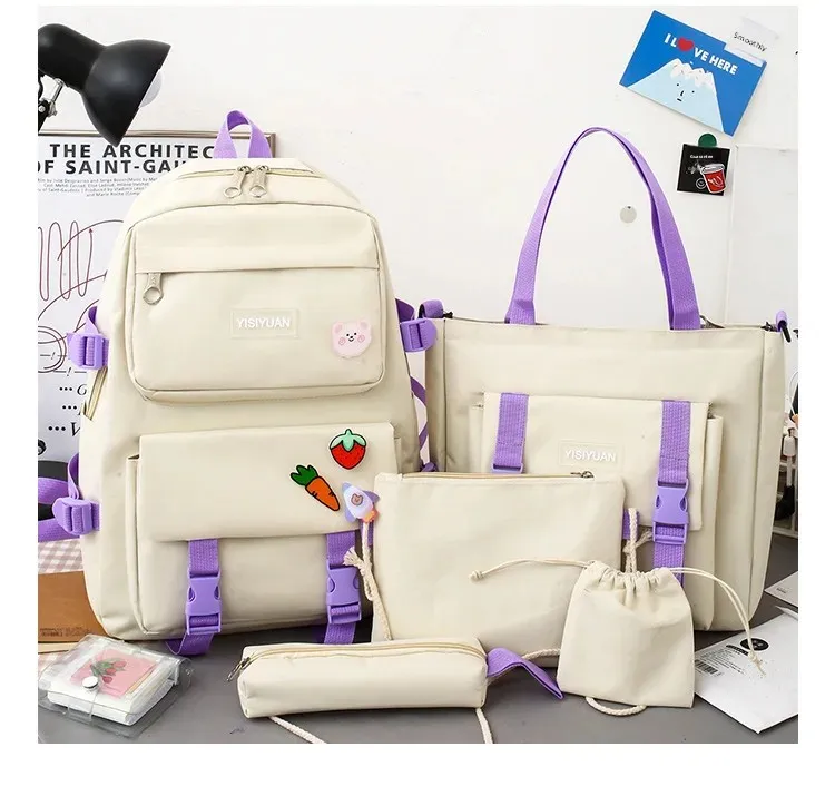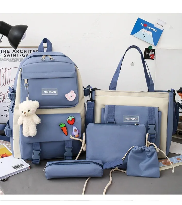 • Five-piece Set : This backpack is part of a five-piece set, offering a complete school or travel accessory collection.