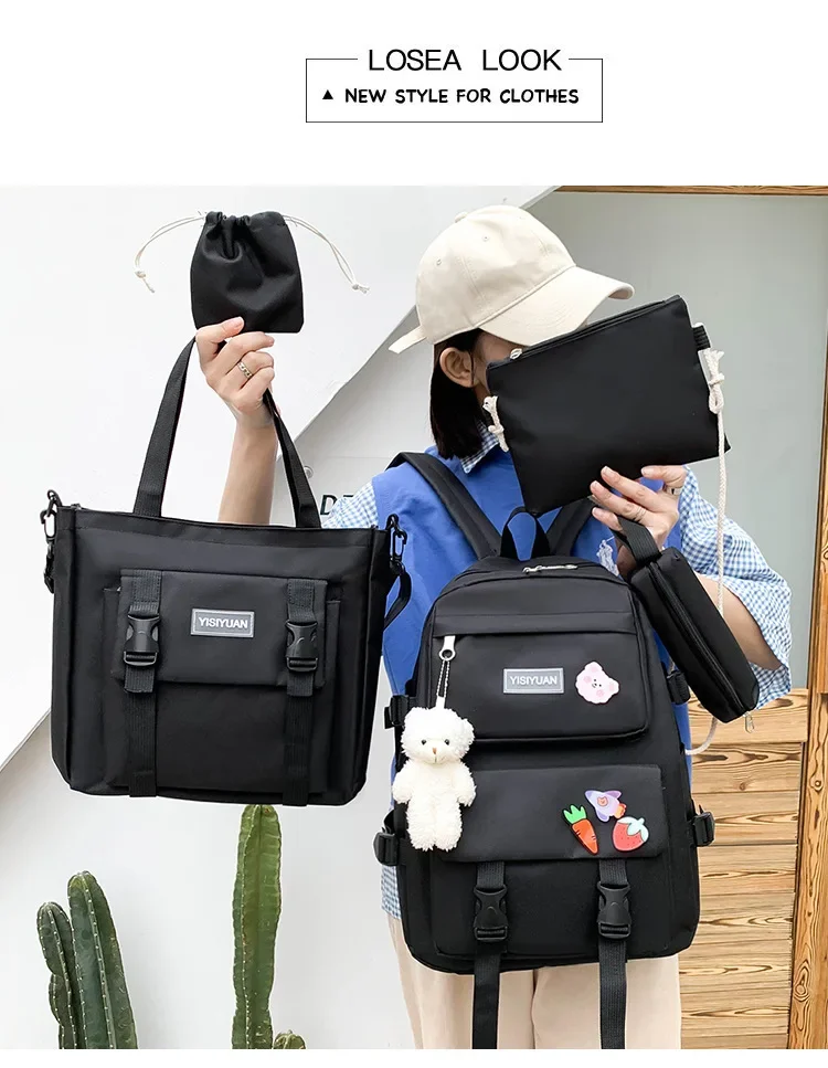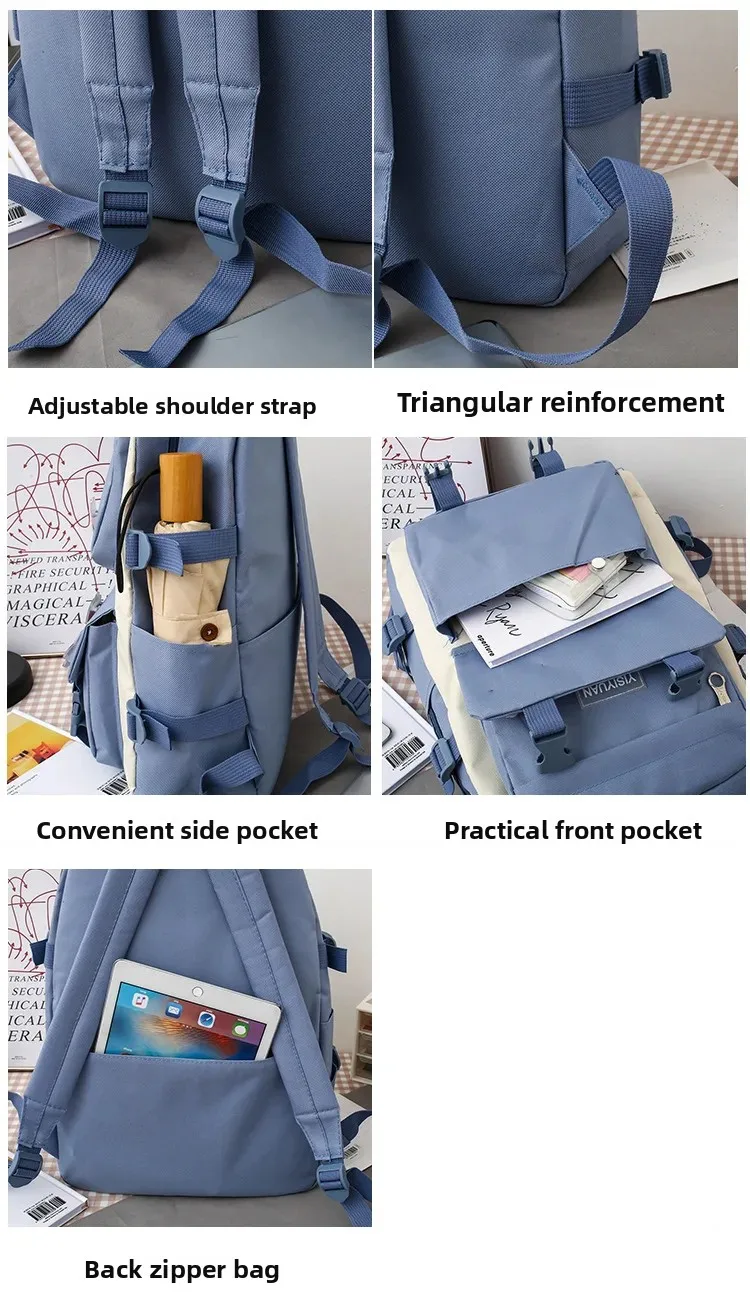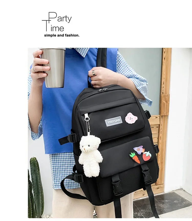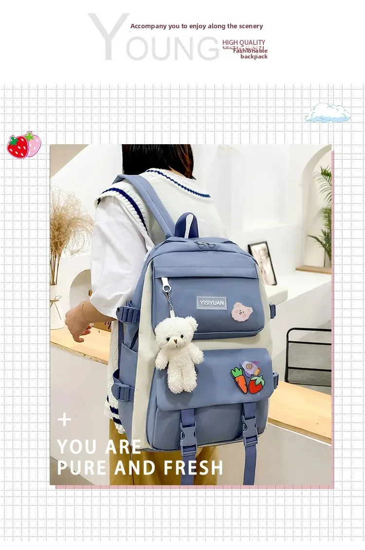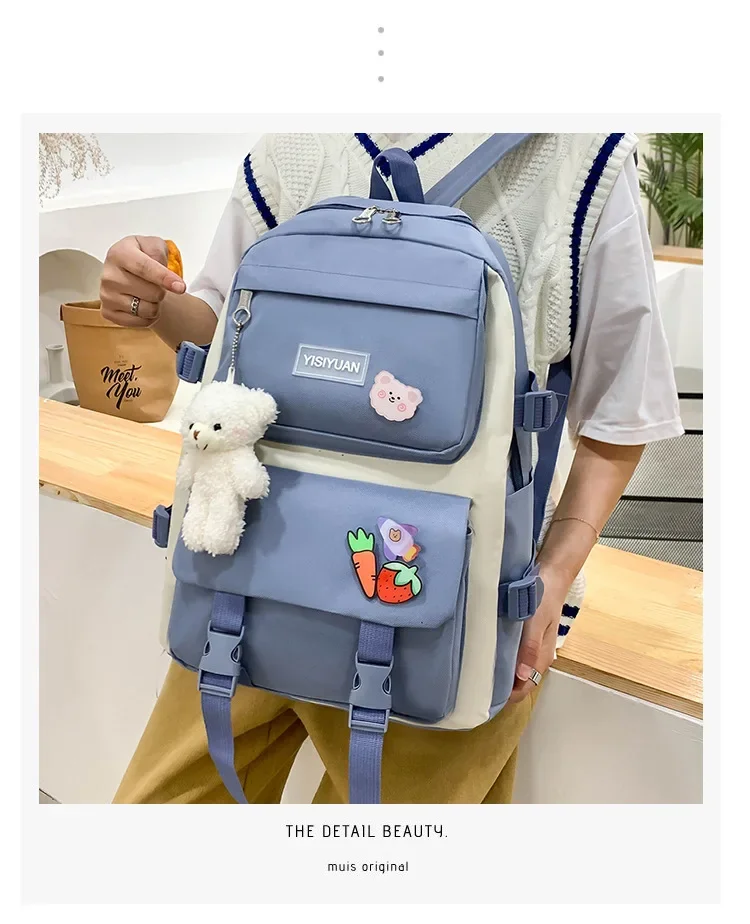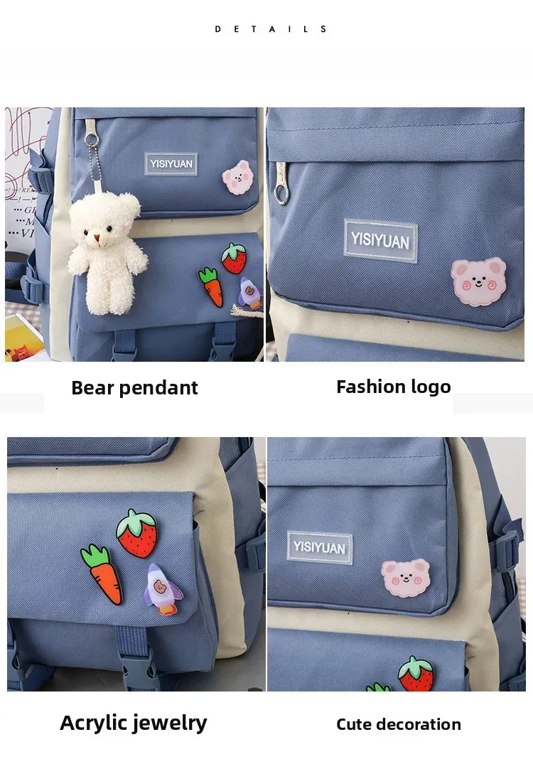 • Five-piece Set : This backpack is part of a five-piece set, offering a complete school or travel accessory collection.