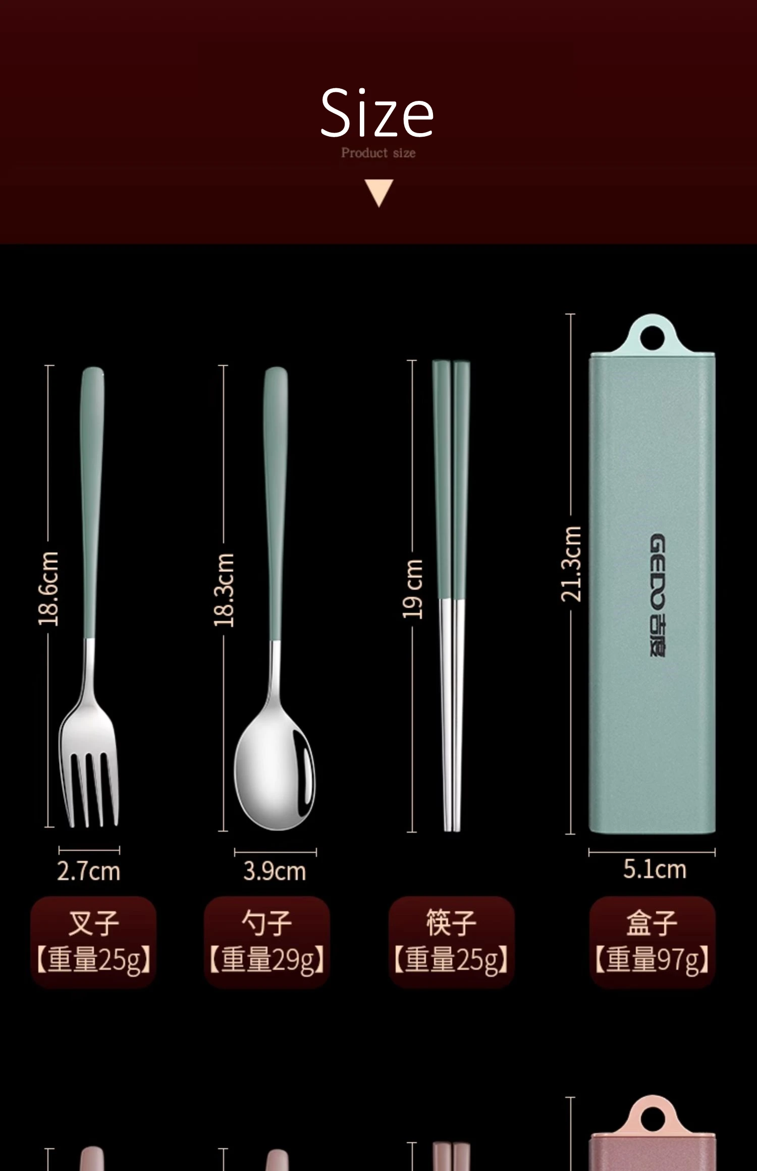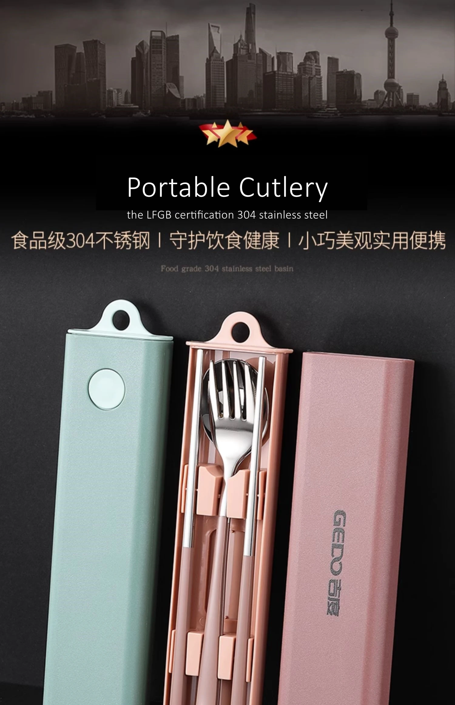 Parameters【Product Name】Portable Cutlery【Brand Name】GEDO【Material】304 Stainless Steel【Certificated】LFGB