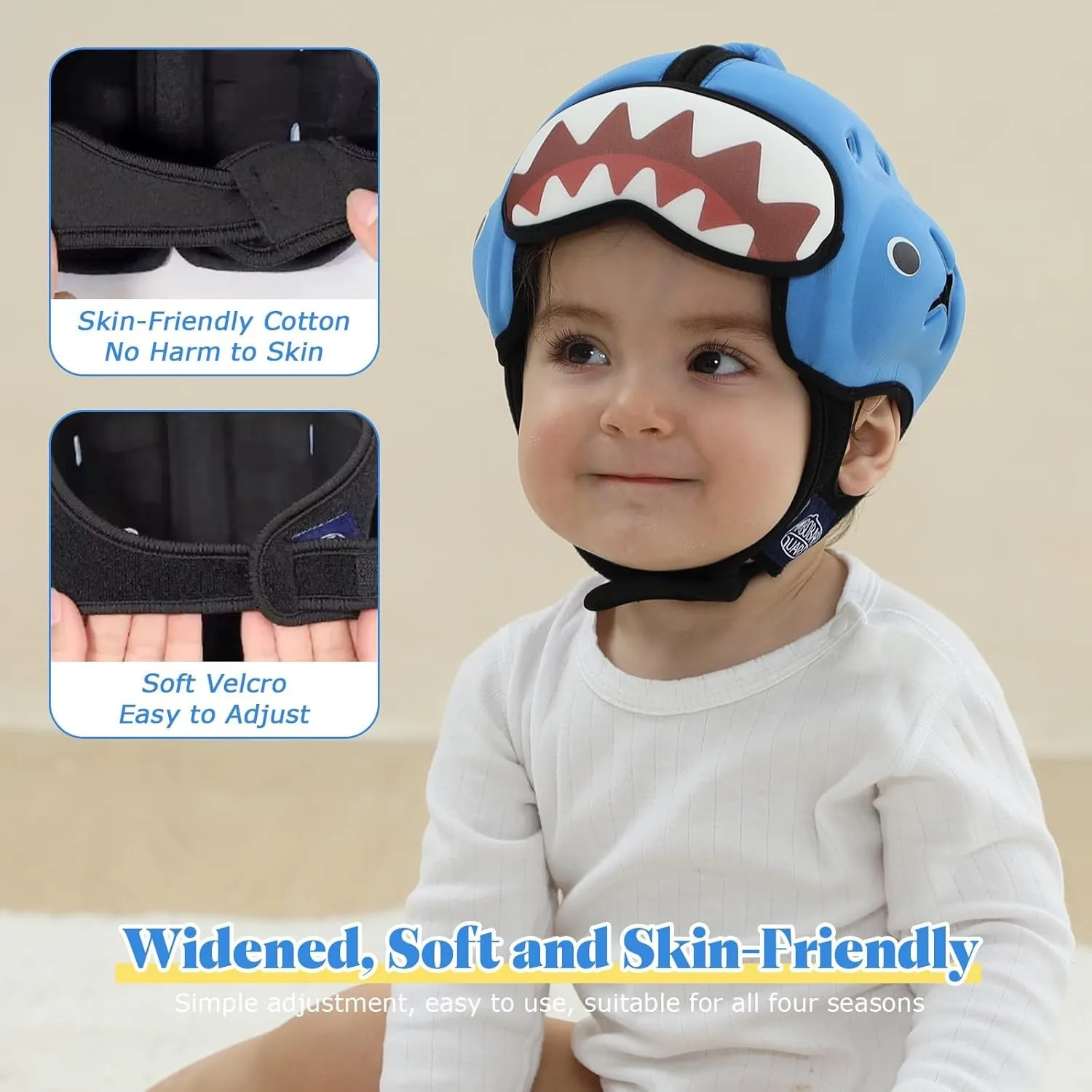 This headgearis designed to protect babies aged between 6 and 30 months when they learn to crawl, walk, and run. It prevents head injuries from bumps, falls, or drops.