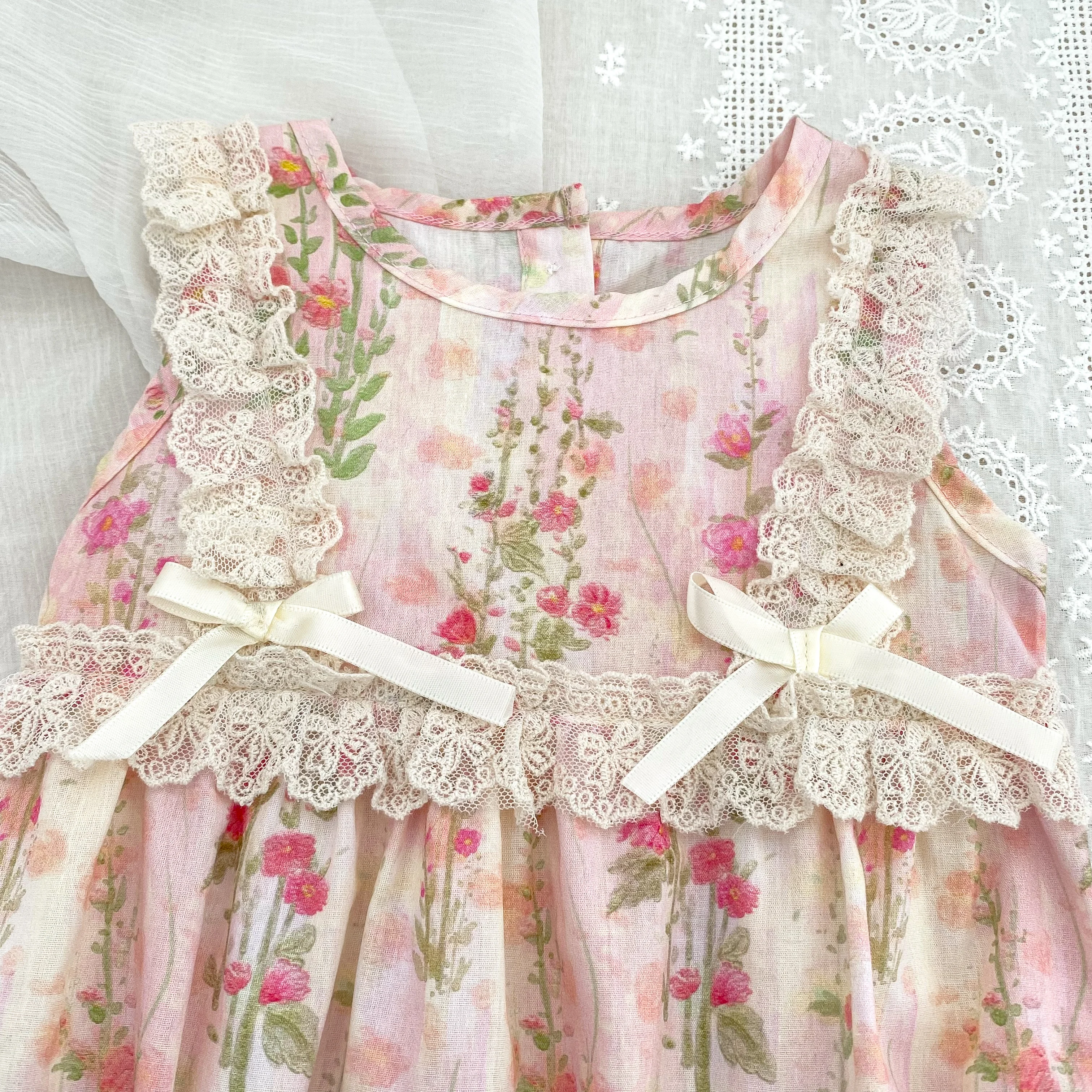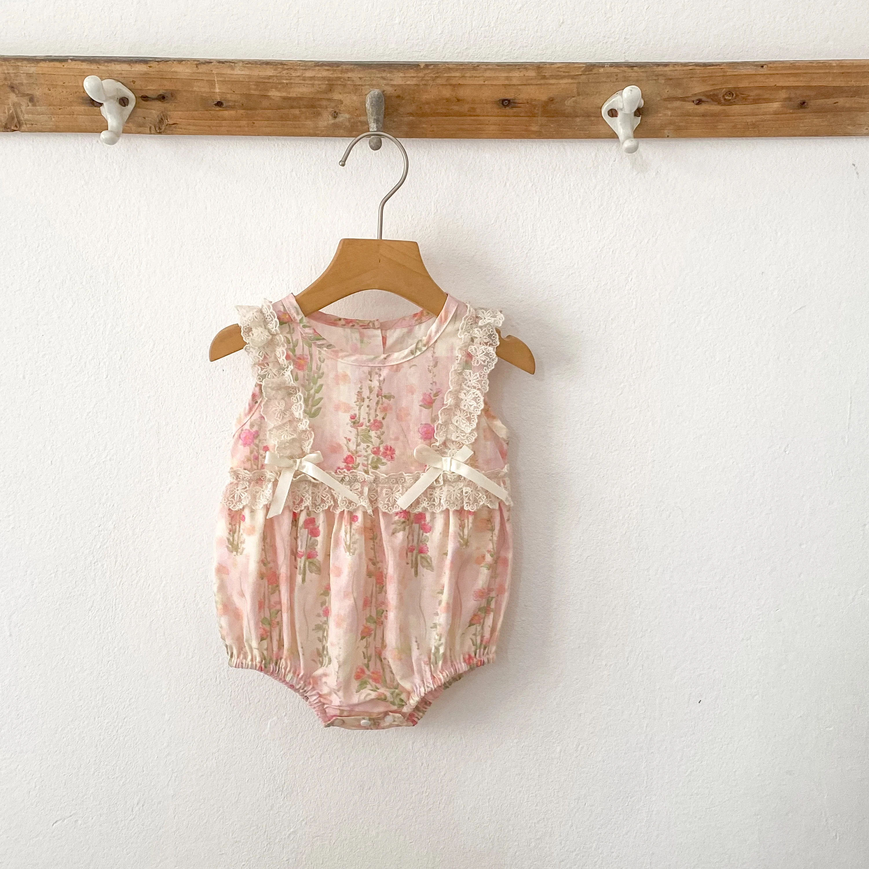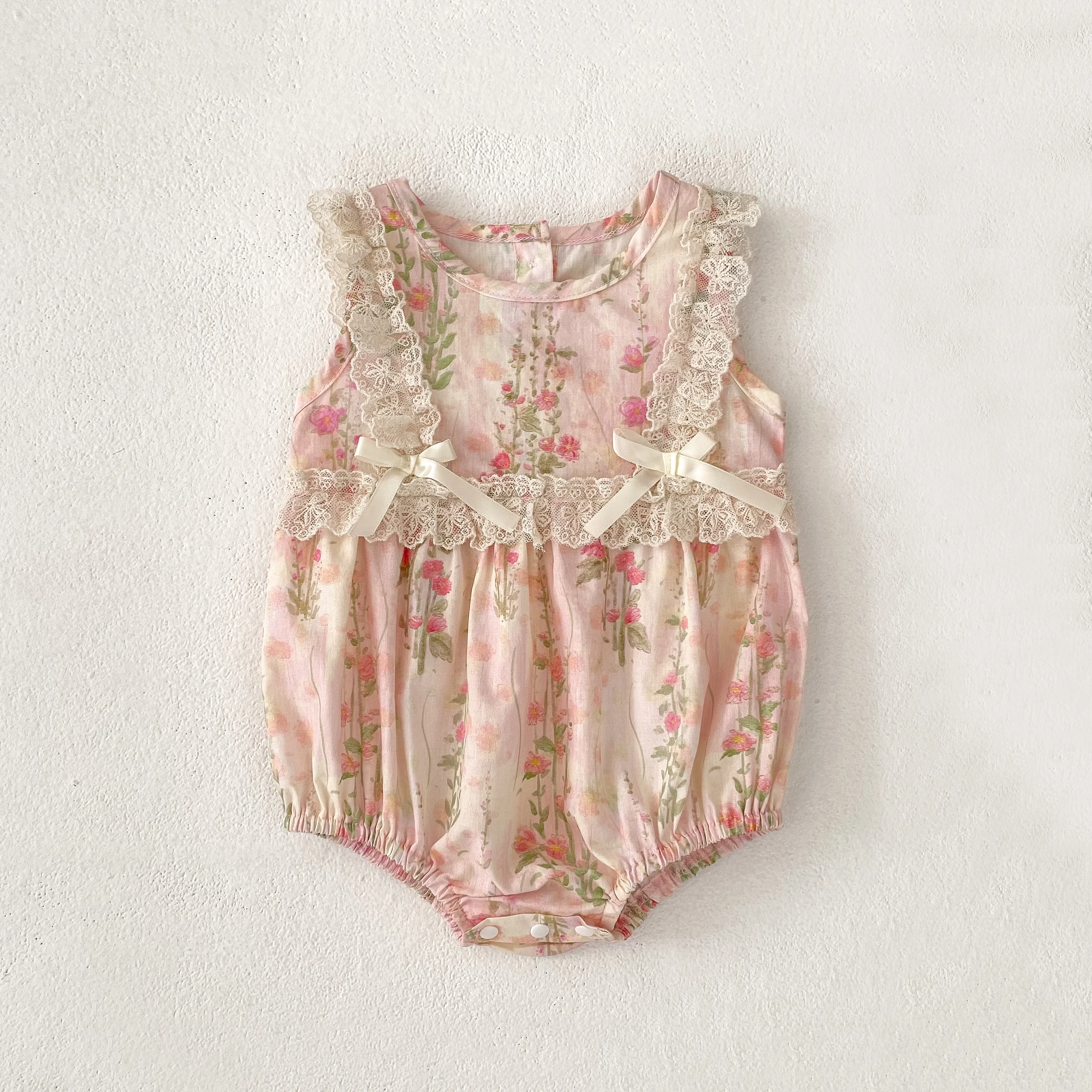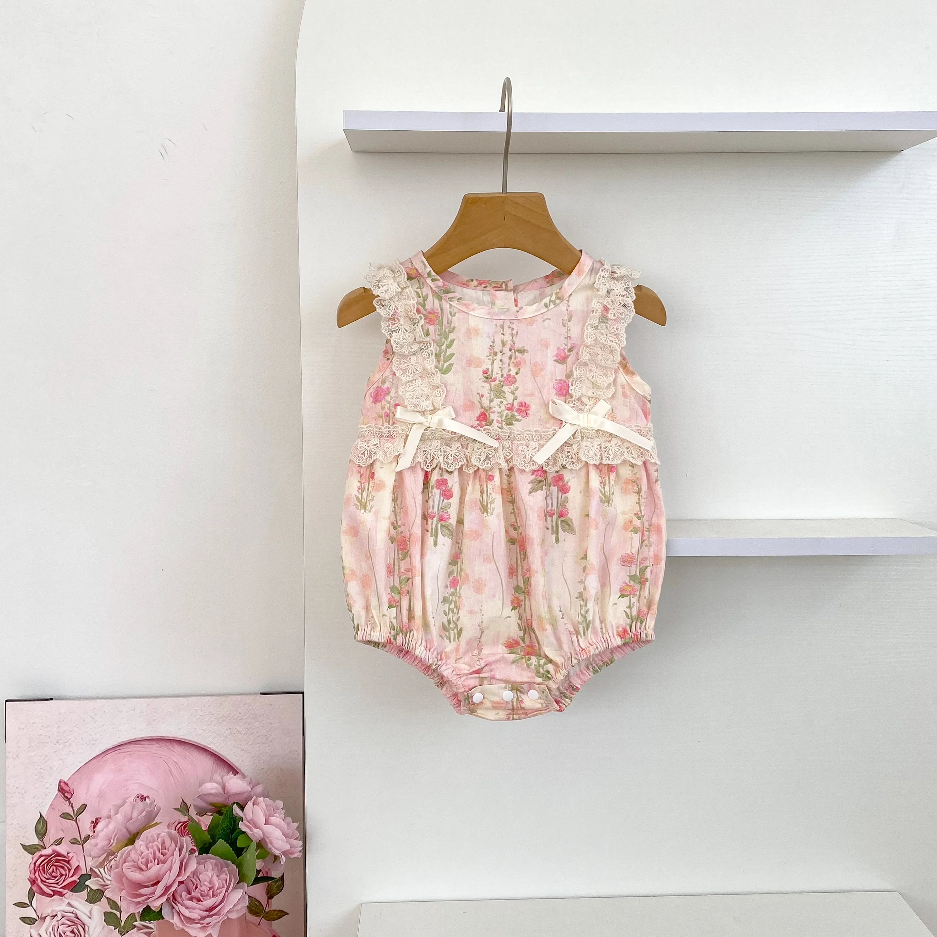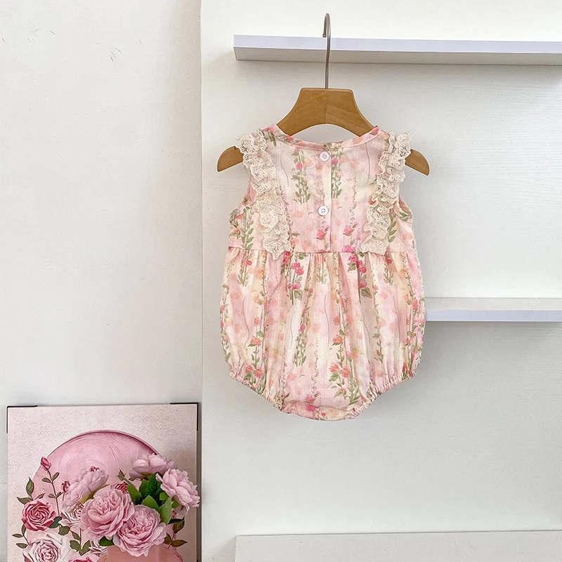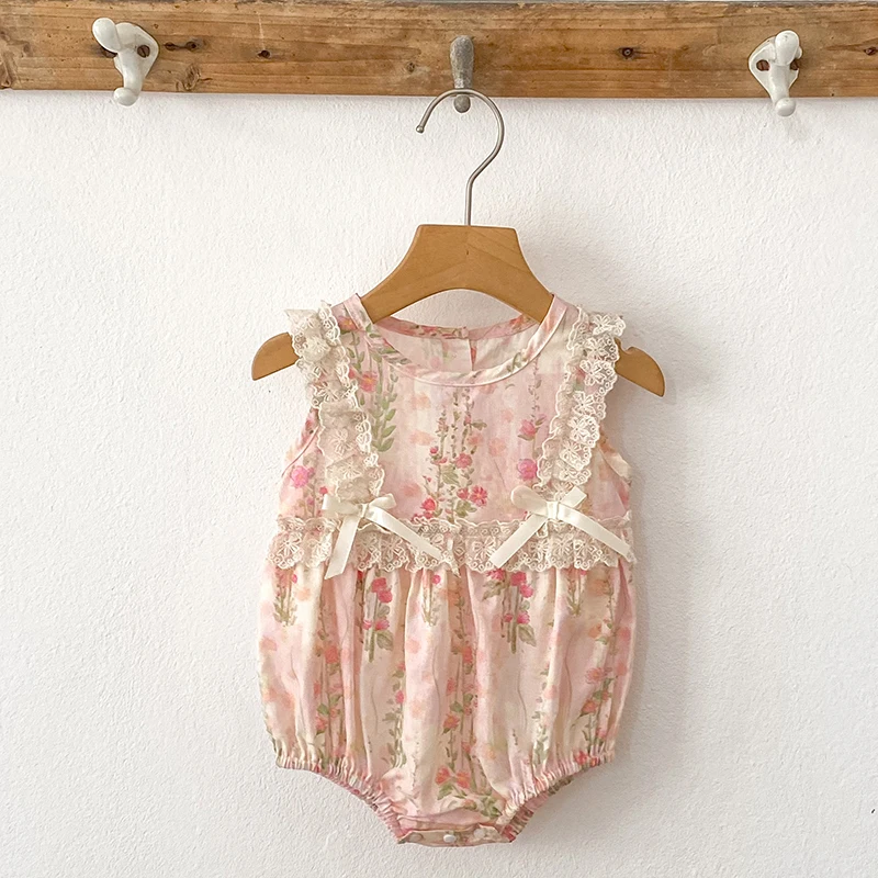 New Baby Girl Bodysuit Floral Baby Clothes Lace Summer New Female Baby Small Pink Flower bow Romper Newborn One-piece JumpsuitSize: 66(3M) 73(6M) 80(9/12M) 90(18/24M)Size Length Chest Fit Height(cm)66 40 42 55-6073 42 44 60-6580 44 46 70-7590 47 50 80-85Note: Because measurement of different reasons,1-3 cm error belongs to the normal situatioBecause the cause of the monitor screen of a computera little bit off color attribute normal situation.Because the cause of the shooting,off color belongs to the normal situationProduct Picture :
