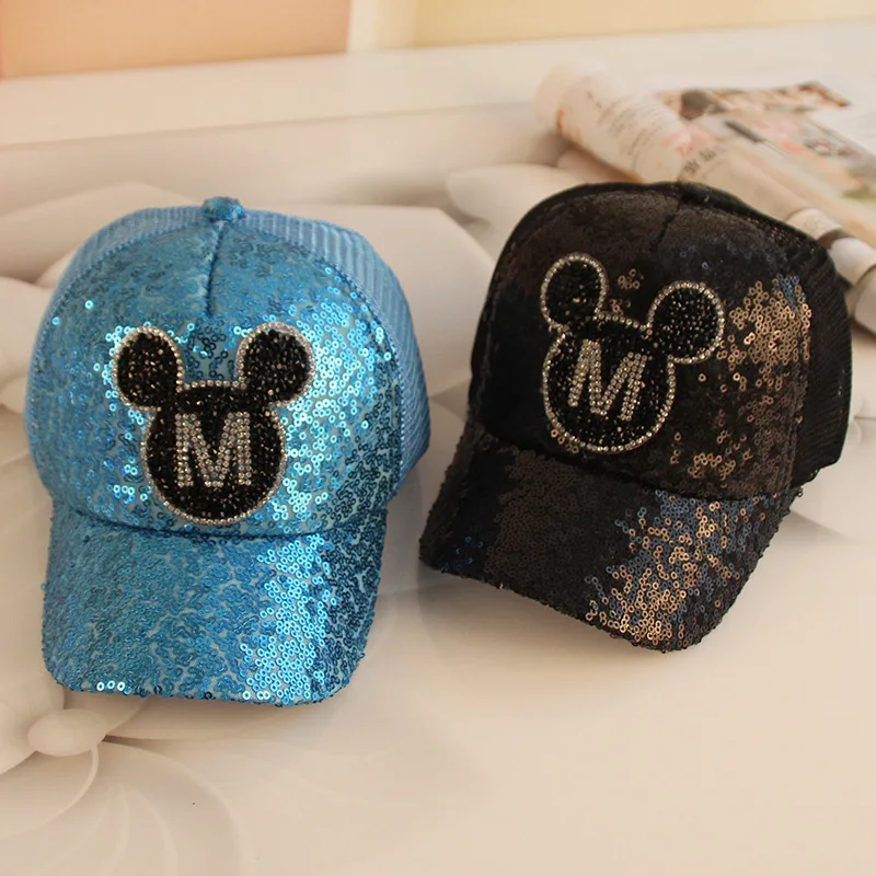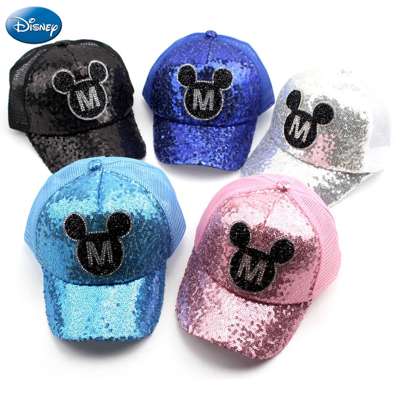 Disney Spring Summer Children Baseball Caps Mickey Sequin Cartoon Sun Visor Hat Boys Girls Adjustable Leisure Breathable CapsHat Size:48-52cm,AdjustableHat Material:PolyesterApplicable Age:3-8 years old