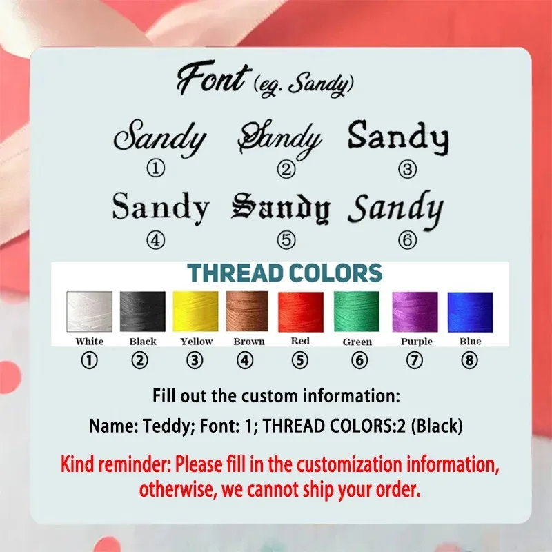 Q: How to add the name of the child? איך כותבים את השם של הילד?A: Please click Buy now -Choose color or style – Customize now,Text Your Name, Font Style and and Thread ColorQ:Can I write a Hebrew name?A: Yes it's okPlacing a OrderPlease Text Your Name, Font Style and Thread Color1. Initials or Name2. Font Style3. Thread Colorif you choose No Need Name, No need fill in the name, it's blank, no name. Thanks