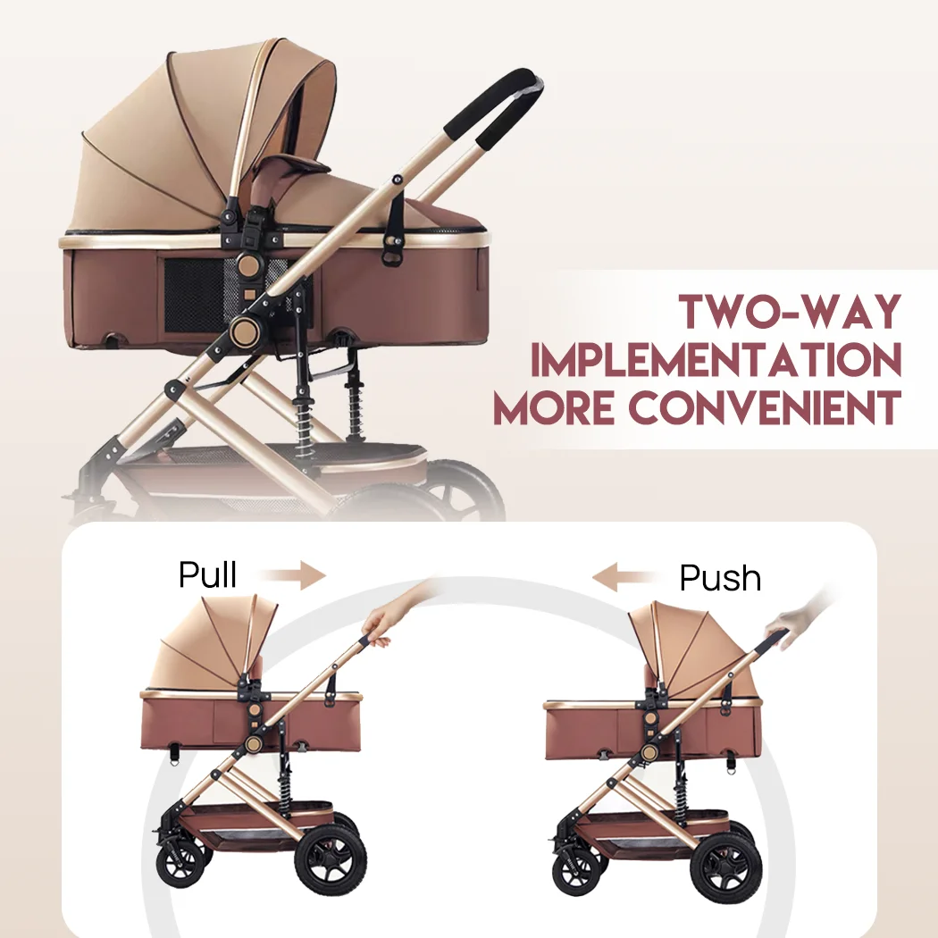 Give your baby the perfect blend of safety, comfort, and style with our Baby Stroller! Designed for newborns to toddlers (0-36 months), this stroller features a 3-in-1 reversible seat that switches between forward and rear-facing modes, allowing your little one to explore the world or bond with you. The extra-large detachable bassinet (82cm x 37cm) provides ample space for peaceful naps, while the 3 adjustable backrest angles (100° / 145° / 180°) adapt to sitting, lounging, or lying positions. Features ✅ 3-in-1 Versatile DesignReversible Seat: Switch between forward-facing (explore the world) and rear-facing (bond with parents) modes easily.3 Adjustable Backrest Angles (100° / 145° / 180°): Perfect for sitting, lounging, or napping.Detachable Bassinet (82cm x 37cm): Spacious, breathable, and suitable for newborns to toddlers (0-36 months). ✅ Premium Durability & SafetyUpgraded High-Carbon Steel Frame: Reinforced triangular structure with automotive-grade paint for rust resistance and longevity.5-Point Safety Harness: Secure your baby in place during rides.Dual Brake System: One-step locking mechanism on rear wheels for instant stopping. ✅ Smooth Ride & Comfort4-Wheel Suspension: Shock-absorbing, non-slip rubber wheels (front: 17cm, rear: 25cm) adapt to all terrains.Extended Canopy: 3-layer UPF 50+ sunshade with ventilation windows for sun protection and airflow.Padded Seat & Accessories: Soft cotton mattress, removable mosquito net, and insulated foot cover for year-round comfort. ✅ Convenient PortabilityOne-Hand Fold & Compact Design: Lightweight frame folds to 90 x 63 x 38cm for easy storage and travel.Large Storage Basket: Carry diapers, toys, and essentials effortlessly.Why Choose Us?✨ Exclusive Khaki Design: Sleek, modern, and stands out from generic models.✨ All-Weather Ready: Windproof, waterproof, and breathable for Australian climates.✨ Easy Assembly: Pre-installed components save time—ready to use in minutes! Perfect For:Newborns to toddlers (0-3 years)Daily walks, shopping trips, or travelParents seeking safety, comfort, and style Order Now and Give Your Baby the Ultimate Comfort! 🛒 SpecificationsMaterial: High-carbon steel + Oxford fabricFolding size : 90 x 63 x 38 cm Dimensions (Unfolded): 78 x 40 x 100cmStyle: Pushchairs and Travel SystemConstructed with: Sturdy aluminum alloy, anti-rust & sturdySleep basket long: 82 x 37cm3 Angle Adjustable Seat: 100°/145°/180°Front Wheel Diameter: 17cmRear Wheel Diameter: 25cmWeight Capacity: Up to 15kgColor: Black Gold/ KhakiPackage ContentBaby Stroller x 1Cotton Mat x 1Mosquito Net x 1Foot Cover x 1Wrist Strap x 1Awnings x 1Bottle Holder x 1Shoulder Harness x 1English Manual x 1