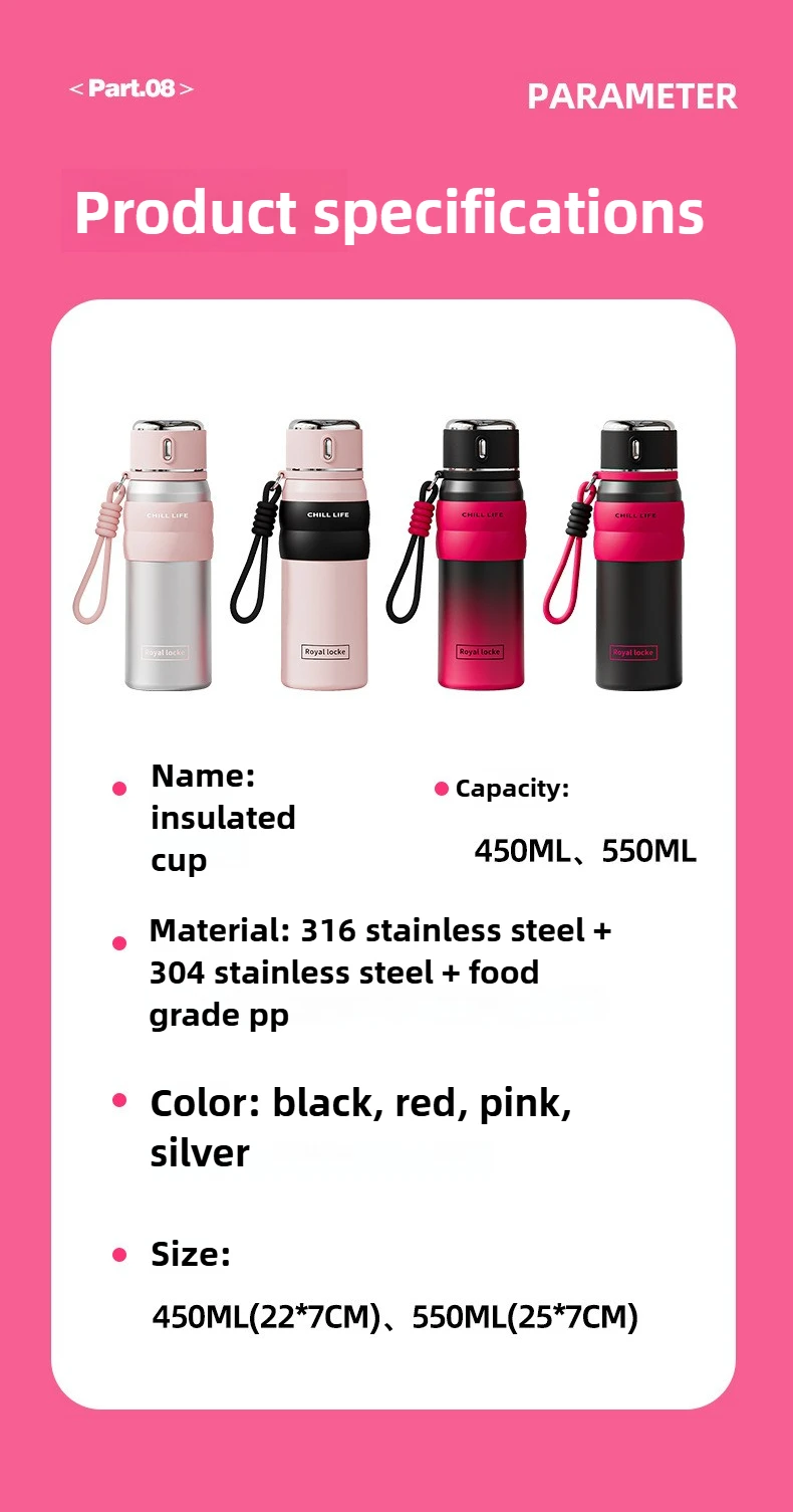 🔥 Smart Thermal Bottle – The Only Cup You’ll Need for Work, Gym & Travel!**✅ **Why Women Love It**:> – **Medical-Grade 316L Stainless Steel** (Not 304!): 100% food-safe, zero rust, safe for lemon juice/coffee.> – **Smart Temperature Display**: See real-time temp (30°C-90°C) on cup body.> – **0-6H Hot / 0-3H Cold**: Lab-tested (95°C → 70°C after 6h | 5°C → 10°C after 3h).> – **One-Hand Direct Sip Lid**: Leak-proof (upside down test passed).> – **Eco-Friendly & Compact**: Fits car cup holders , BPA-free.📦 **Includes**: 1× Bottle (450/550ml).