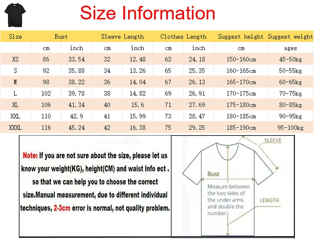 tshirt Size information