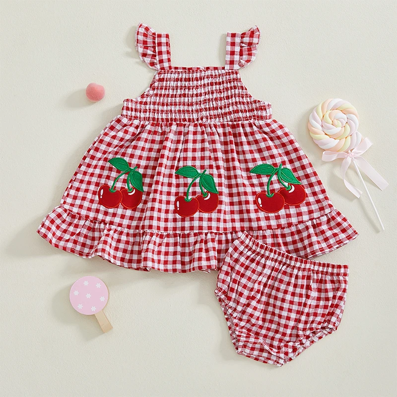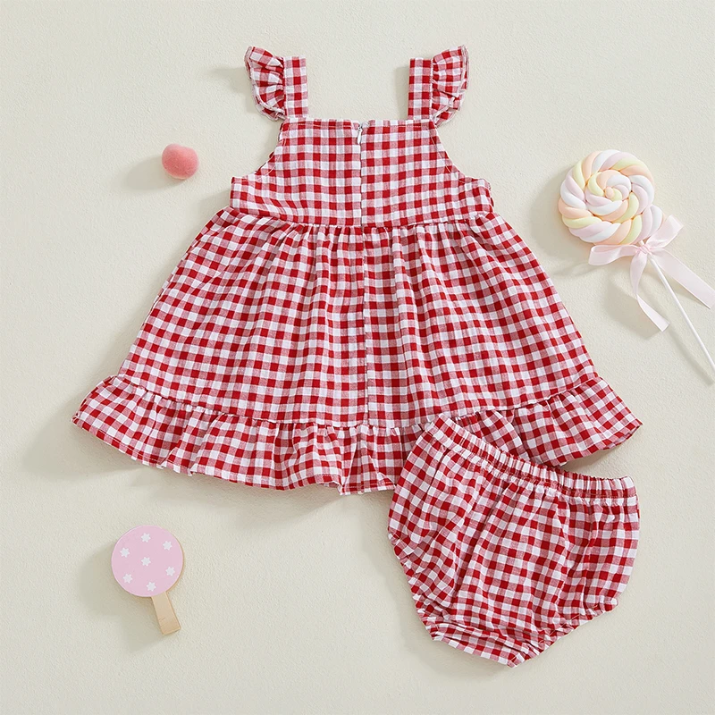 Baby Girl Summer Outfits Cute Sleeveless Plaid Print Tops + Shorts Set Toddler 2Pcs Clothes