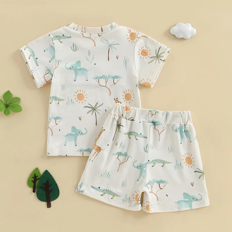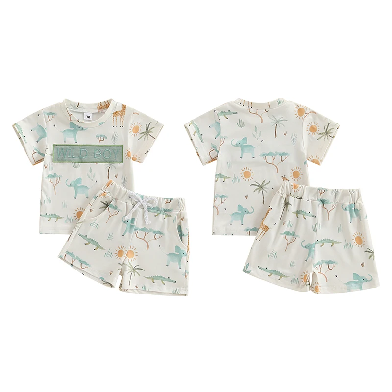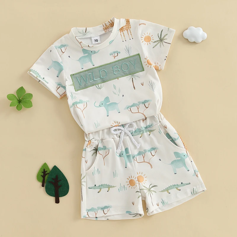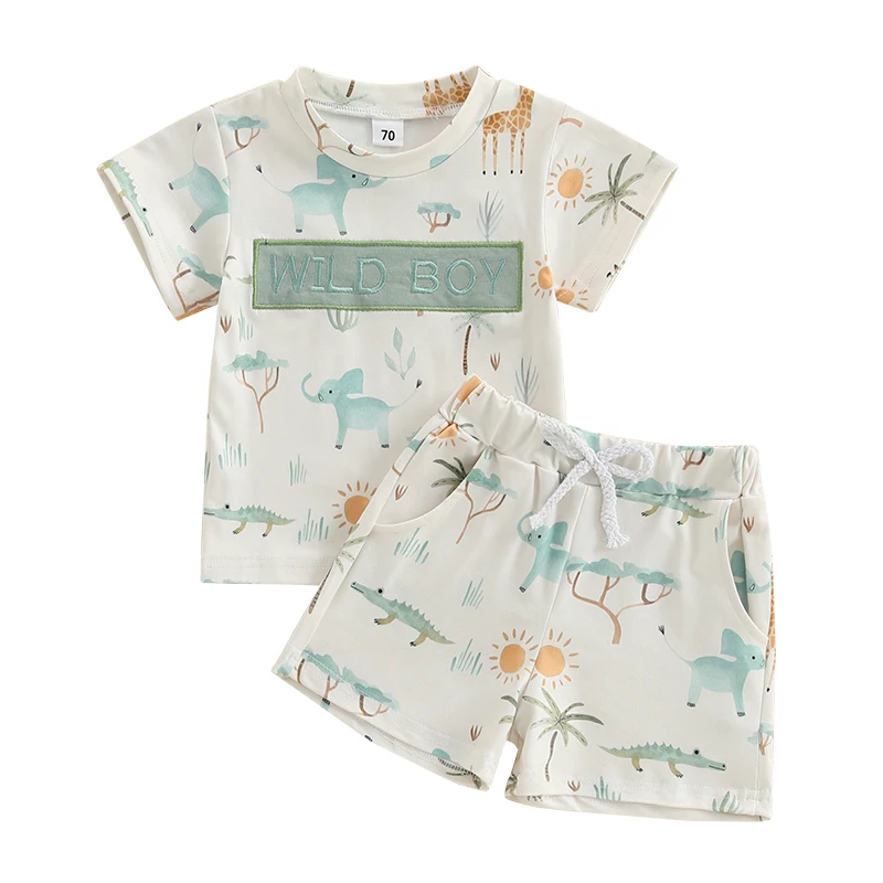 Baby Toddler Boy Shorts Set Animal Letter Short Sleeve T-shirts Elastic Waist Shorts 2 Piece Summer Outfit Size (cm) 70 Tops Length: 31 Bust: 50 Sleeve: 8 Shoulder: 21 Pants Length: 21 Waist: 36 Advised Age: 0-6 Months 80 Tops Length: 33 Bust: 52 Sleeve: 8.5 Shoulder: 22 Pants Length: 22.5 Waist: 38 Advised Age: 6-12 Months 90 Tops Length: 35 Bust: 54 Sleeve: 9 Shoulder: 23 Pants Length: 24 Waist: 40 Advised Age: 12-18 Months 100 Tops Length: 37 Bust: 57 Sleeve: 9.5 Shoulder: 24.5 Pants Length: 25.5 Waist: 42 Advised Age: 18-24 Months 110 Tops Length: 39 Bust: 60 Sleeve: 10 Shoulder: 26 Pants Length: 27 Waist: 44 Advised Age: 2-3 Years Size (inch) 70 Tops Length: 12.2 Bust: 19.68 Sleeve: 3.15 Shoulder: 8.27 Pants Length: 8.27 Waist: 14.17 Advised Age: 0-6 Months 80 Tops Length: 12.99 Bust: 20.47 Sleeve: 3.35 Shoulder: 8.66 Pants Length: 8.86 Waist: 14.96 Advised Age: 6-12 Months 90 Tops Length: 13.78 Bust: 21.26 Sleeve: 3.54 Shoulder: 9.06 Pants Length: 9.45 Waist: 15.75 Advised Age: 12-18 Months 100 Tops Length: 14.57 Bust: 22.44 Sleeve: 3.74 Shoulder: 9.65 Pants Length: 10.04 Waist: 16.54 Advised Age: 18-24 Months 110 Tops Length: 15.35 Bust: 23.62 Sleeve: 3.94 Shoulder: 10.24 Pants Length: 10.63 Waist: 17.32 Advised Age: 2-3 Years Specification: Advised Age: 0-6 Months, 6-12 Months, 12-18 Months, 18-24 Months, 2-3 Years Materials: 95% Polyester and 5% Elastane Pattern: Animal Print, Letter Embroidery Color: Beige Gender: Boy Package Contents: 1 * Tops + 1 * Shorts Note: 1. Please understand there may be a 1-2 cm deviation exist. 2. Due to the lighting and monitors, there is a slight difference between the picture and the real item. Promise: If the product has any quality problems, please relate with us, we will help you solve the problem as quickly as possible.