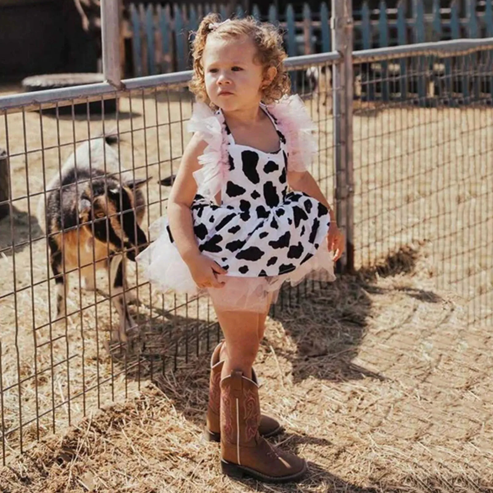 Toddler Baby Girls Romper Dress Infant Cow Print Tulle Clothes Newborn Sleeveless Tutu Dresses Hair Band Headband Outfits Set CostumesFeatures:Polyester+ CottonHand Wash Only Made of high quality cotton blend, very soft and comfortable,skin friendly and breathable,Soft Material no harm for your baby’s delicate skin;It is a best gift for your angel princess Snap closureFeatures: Newborn infant girl romper, ruffle sleeveless tutu dress, cow pattern design, elastic waist bodysuit tulle dress, snap closure, easy to change diapers. With matching hair band. Size: Infant girl’s sleeveless tulle romper dress, it is fit for girls infant 6-12 months, 12-18 months, toddler 18-24 months, 2-3 Years, 3-4 Years Design: Cute cow print style photography clothes costumes, make this infant clothes set looks attractive and fascinating. Your little one will get tons of compliments in it. Occasion: Suitable for casual, home wear, play wear, photo shoot, family gathering, holiday, Halloween, Christmas, church, birthday, baptism, picnic, celebration and so on. Package include – 1x romper+1x hair band Product Description:Season: Spring,SummerGender: GirlsPattern type: CartoonSleeve type: SleevelessSizeRecommended AgeWaistLength806-12 Months48cm/18.9”40cm/15.7”9012-18 Months50cm/19.7”42.5cm/16.7”10018-24 Months52cm/20.5”45cm/17.7”1102-3 Years54cm/21.3”47.5cm/18.7”1203-4 Years56cm/22.0”50cm/19.7”Size:80Recommended Age:6-12 MonthsWaist:48cm/18.9”Length:40cm/15.7”Size:90Recommended Age:12-18 MonthsWaist:50cm/19.7”Length:42.5cm/16.7”Size:100Recommended Age:18-24 MonthsWaist:52cm/20.5”Length:45cm/17.7”Size:110Recommended Age:2-3 YearsWaist:54cm/21.3”Length:47.5cm/18.7”Size:120Recommended Age:3-4 YearsWaist:56cm/22.0”Length:50cm/19.7”