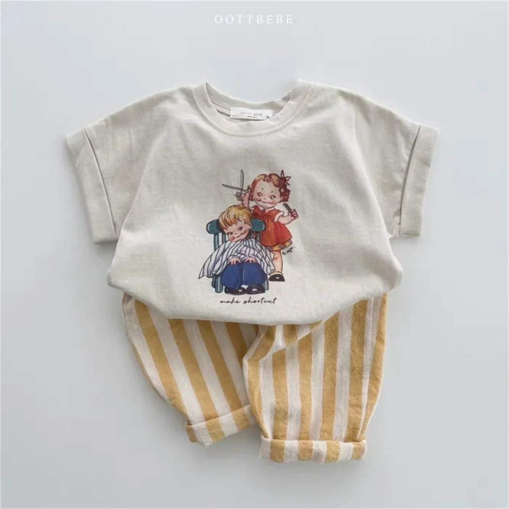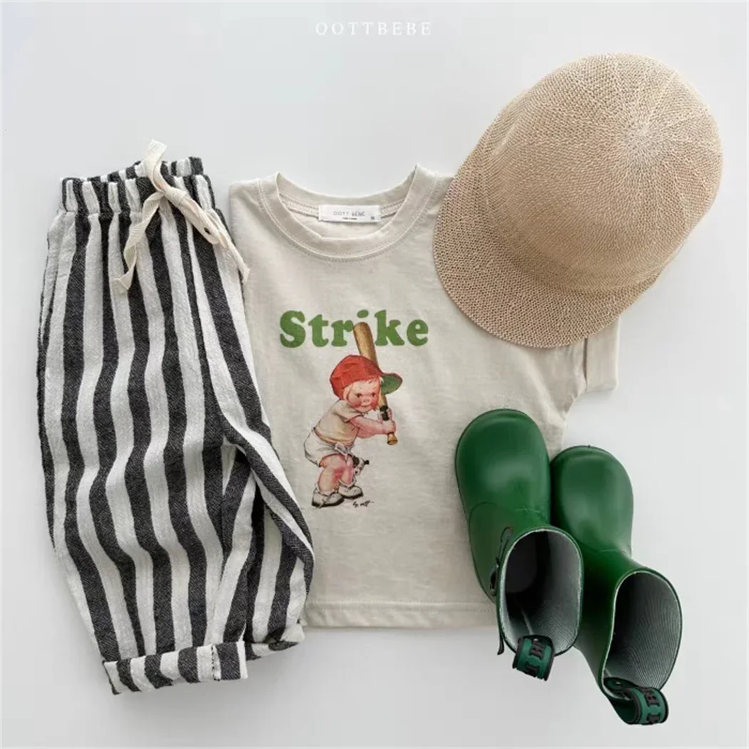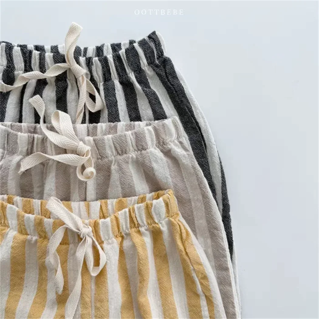 Vintage linen cotton stripe pants for boys casual pocket design elastics waist pants for toddler girls clothing children trousers baby stuff